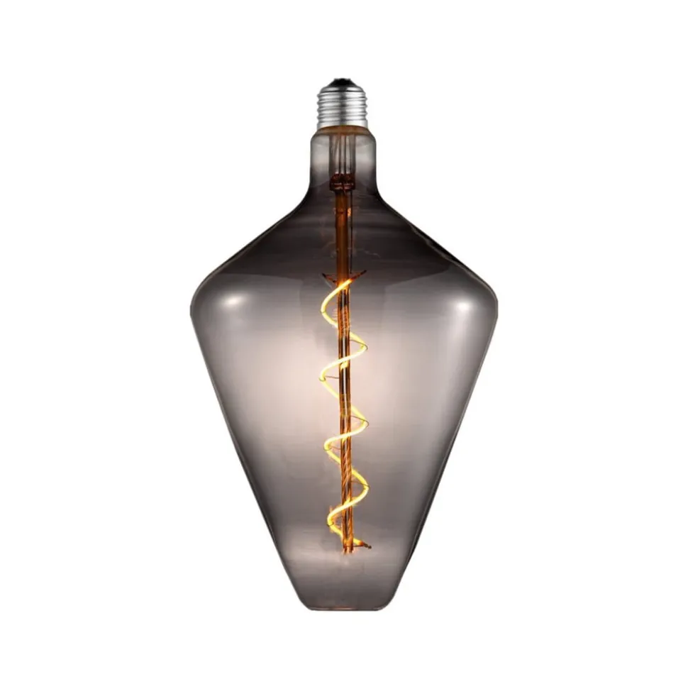 Rookgrijze LED lamp in een speciaal ontwerp voor armaturen met E27 fitting Deze lamp heeft een E27 fitting en is bijzonder geschikt voor armaturen die een vrij zicht op de lichtbron bieden. Het glas is rookgrijs en heeft een bolvorm. De lamp kan naar wens worden gedimd.