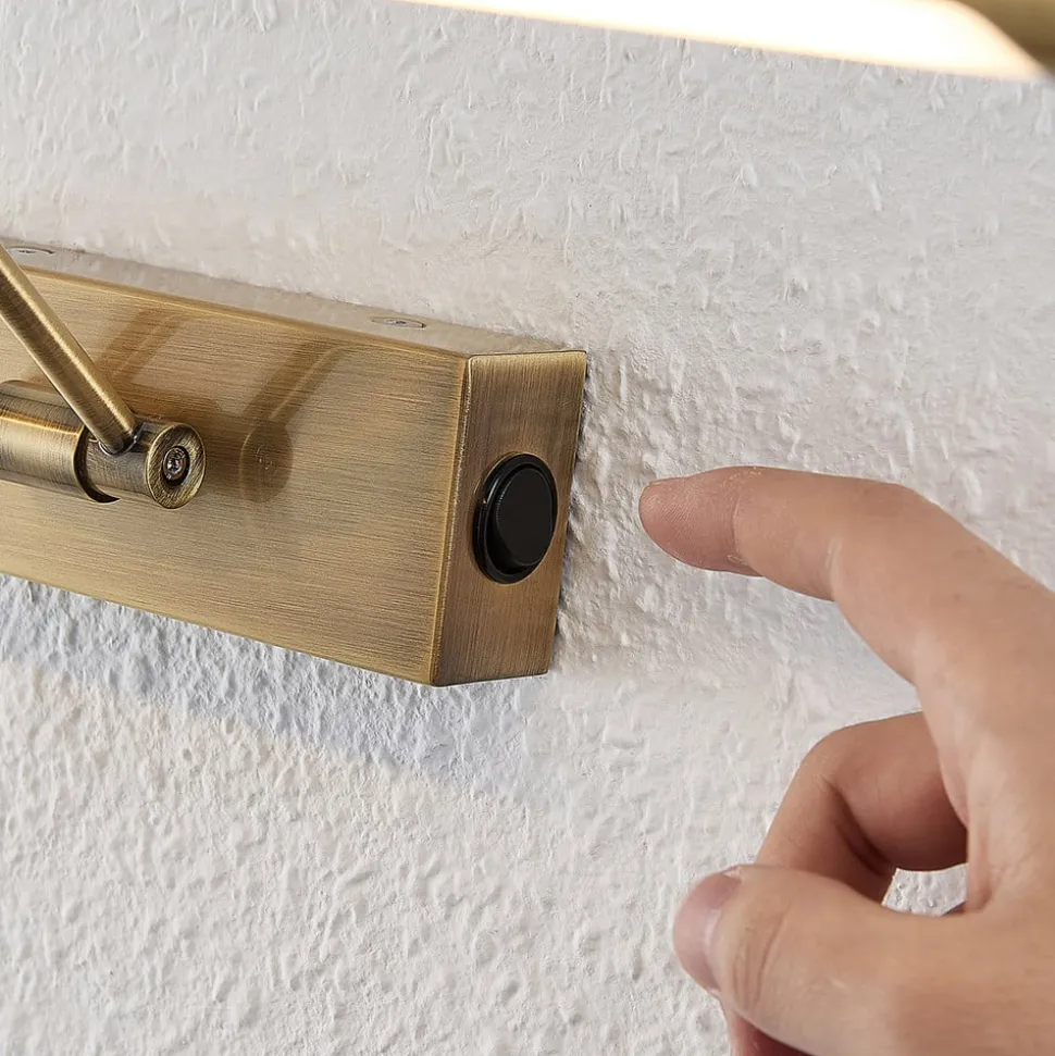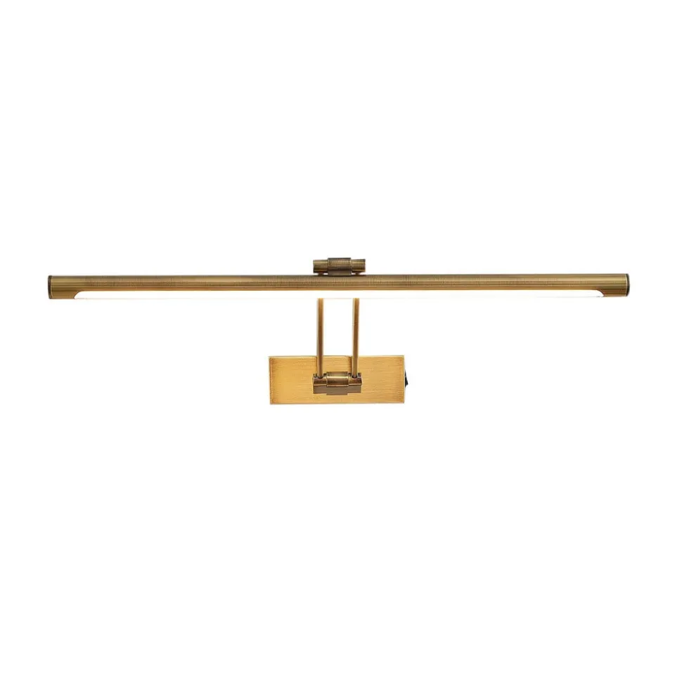 Dimitrij LED schilderij verlichting in antiek messing Met zijn antiek messing kleur is de Dimitrij schilderij verlichting bijzonder geschikt voor kamerconcepten in landhuisstijl of een antieke omgeving. De langwerpige, smalle kap is bevestigd aan twee steunen die uit de muurbeugel steken. De schakelaar om de verlichting te bedienen bevindt zich aan de zijkant van de muurbeugel. Dimitrij is uitgerust met krachtige LED’s, waarvan de warme gloed de sfeer bepaalt voor elke foto of afbeelding.