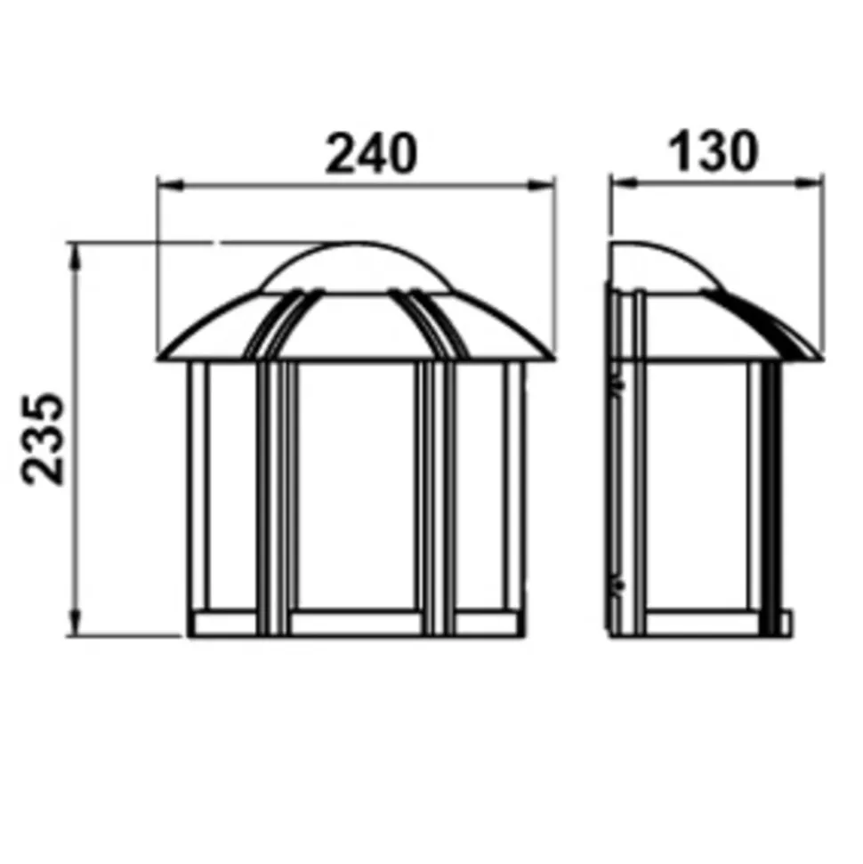 Buitenwandlamp Affra in de vorm van een koepel is van gegoten aluminium en acrylglas en wordt geleverd met bevestigingsplaat. Een prachtig object in elke tuin. Aangename verlichting voor ’s nachts. In plaats van de A 60 gloeilamp kunnen ook energiezuinige lampen met E27 fitting worden gebruikt.