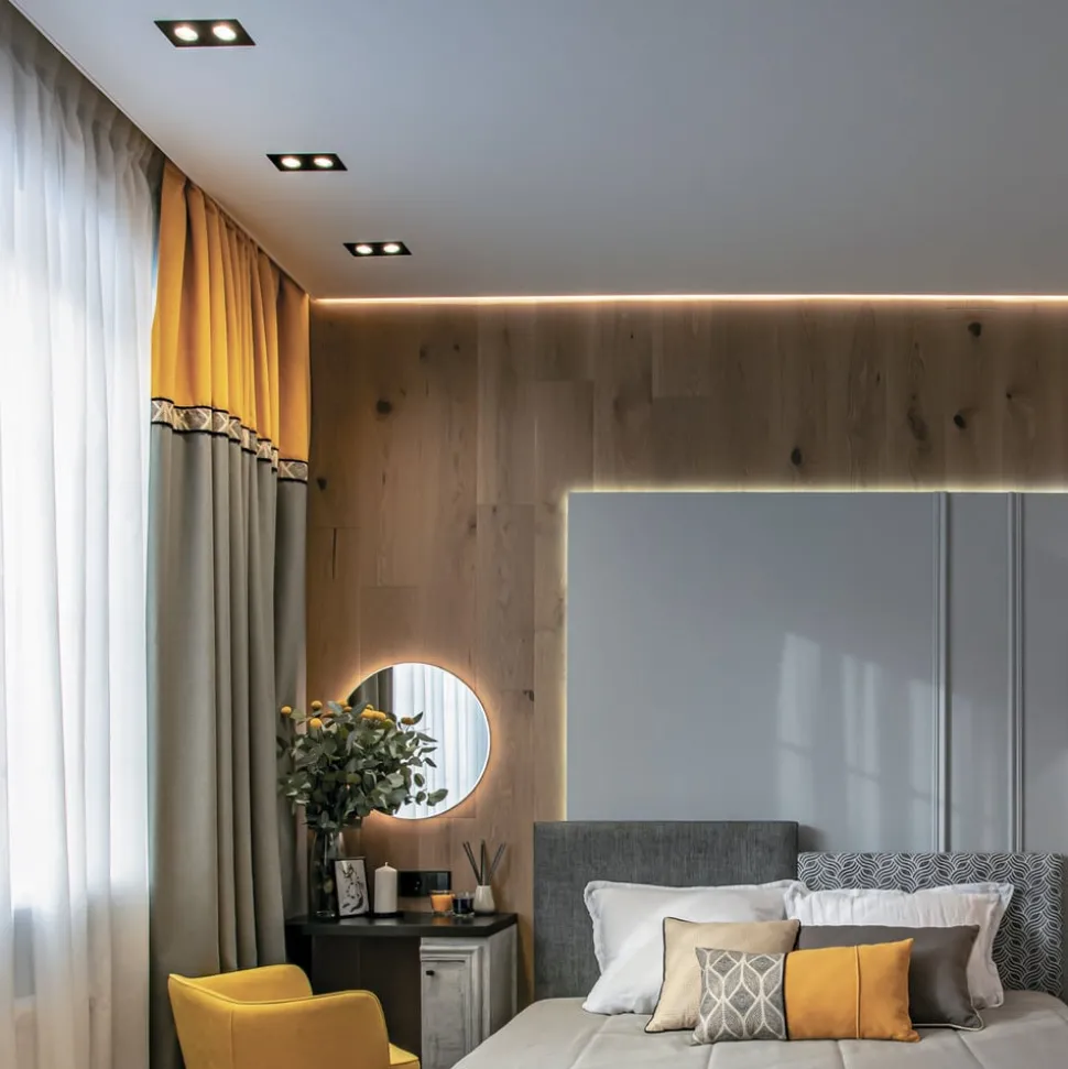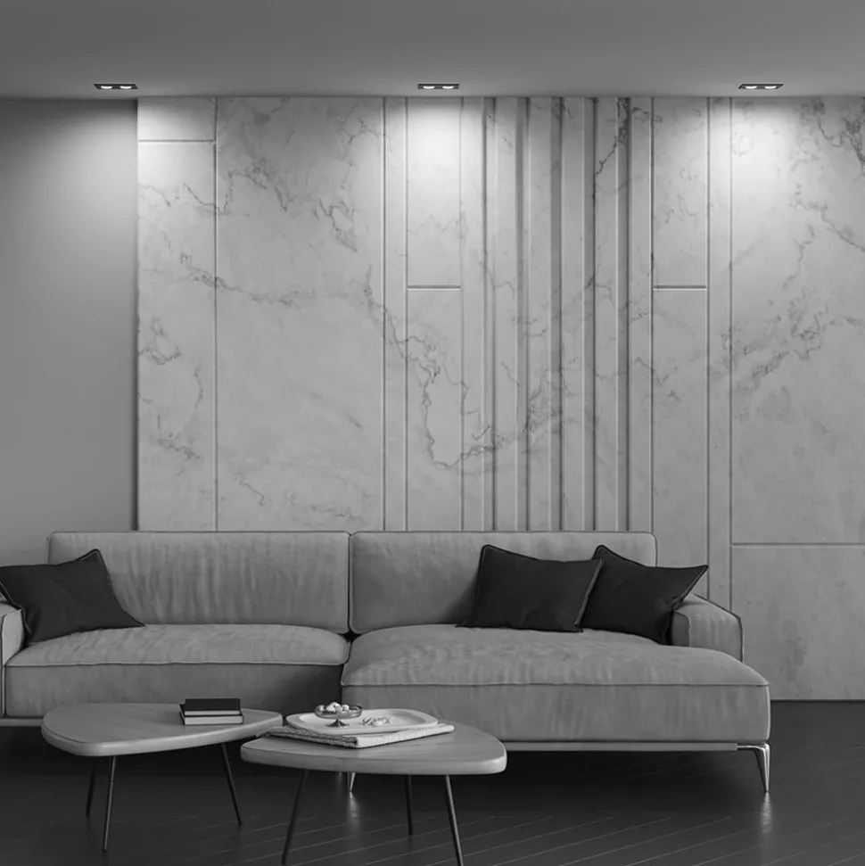 Modern verlichtingsconcept met 2-lamps Atom inbouwlamp Met zijn moderne design en 2-lamps uitvoering belichaamt de Maytoni Atom inbouwlamp een stijlvolle lichtbron voor verfijnde interieurs. Zijn eenvoudige elegantie in zwart past naadloos in de moderne esthetiek van de woonkamer, eethoek of hal. De armatuur is ontworpen om ruimtes onder te dompelen in een aangename sfeer en de stemming te beïnvloeden, afhankelijk van het interieurconcept – van een rustgevende sfeer tot een inspirerende omgeving die de productiviteit stimuleert. Hoewel een dimmer niet is inbegrepen, kan de helderheid van de Atom inbouwlamp individueel worden aangepast door een externe dimmer te installeren om de lichtintensiteit aan te passen aan persoonlijke wensen. Met deze extra optie kan de verlichting flexibel worden gevarieerd van helder en duidelijk tot zacht en dimbaar, waardoor de inbouwlamp een veelzijdig element in Raumgestalt wordt. De Maytoni Atom inbouwlamp is niet alleen een verlichtingselement, maar ook een uitdrukking van smaak en een bewustzijn van het effect van licht op het dagelijks leven. Het is de ideale keuze voor iedereen die waarde hecht aan design en functionaliteit.
