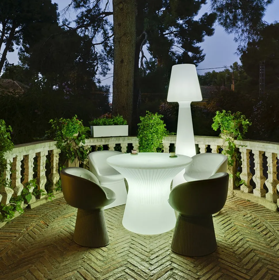 De LED terrasarmatuur Lola is gemaakt van robuust polyethyleen. Ondanks zijn imposante hoogte is hij relatief licht, bestand tegen extreme temperaturen en goed beschermd tegen UV-stralen. Bovendien heeft de armatuur beschermingsklasse IP65, zodat niets het gebruik buitenshuis in de weg staat. Lola kan bijvoorbeeld op het balkon of op het terras worden gebruikt en verlicht de omgeving met haar daglichtwitte licht.