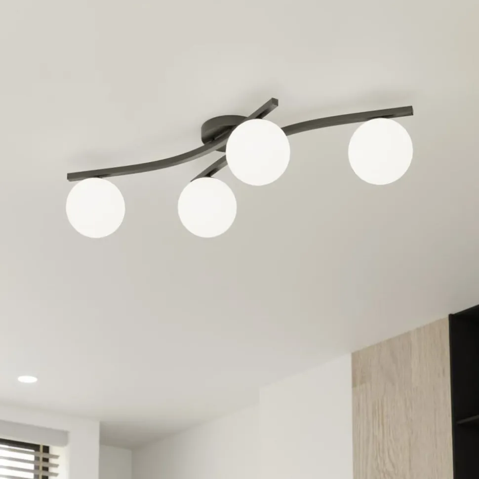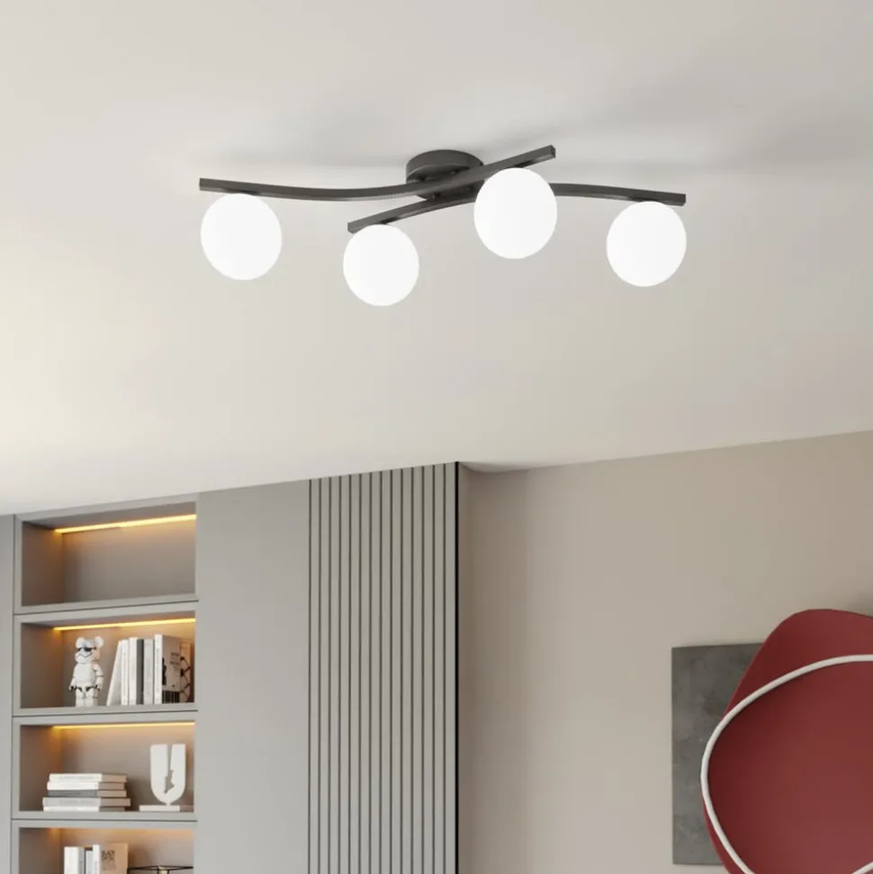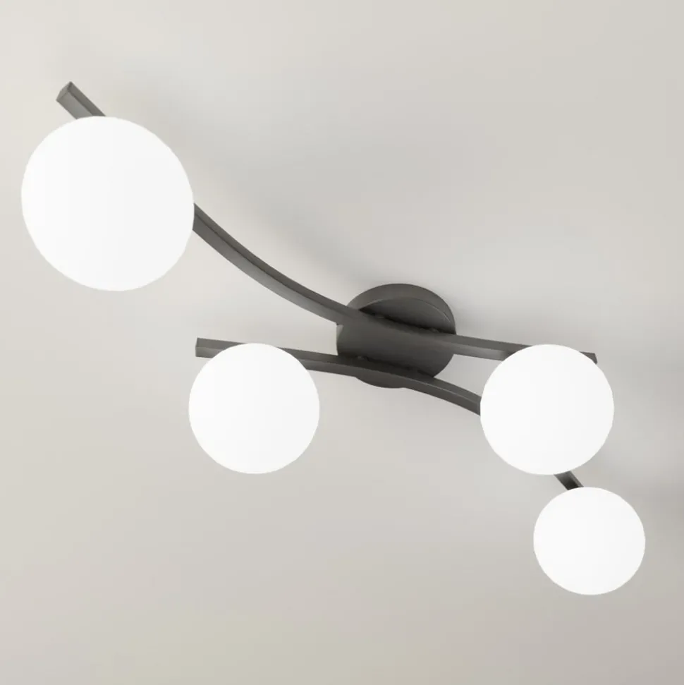 Opus 4-lamps plafondlamp in opaal en zwart De Opus plafondlamp combineert modern design met hoogwaardige materialen en is vervaardigd in Europa. Met haar elegante samenspel van glas en staal creëert ze stijlvolle accenten in elke kamer. Het opaal en zwarte kleurenschema geeft de lamp een tijdloze esthetiek die naadloos kan worden geïntegreerd in een verscheidenheid aan interieurstijlen – extern dimbaar