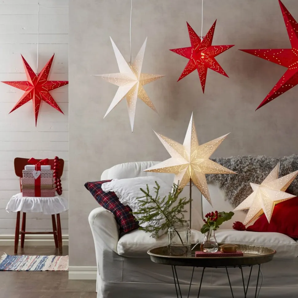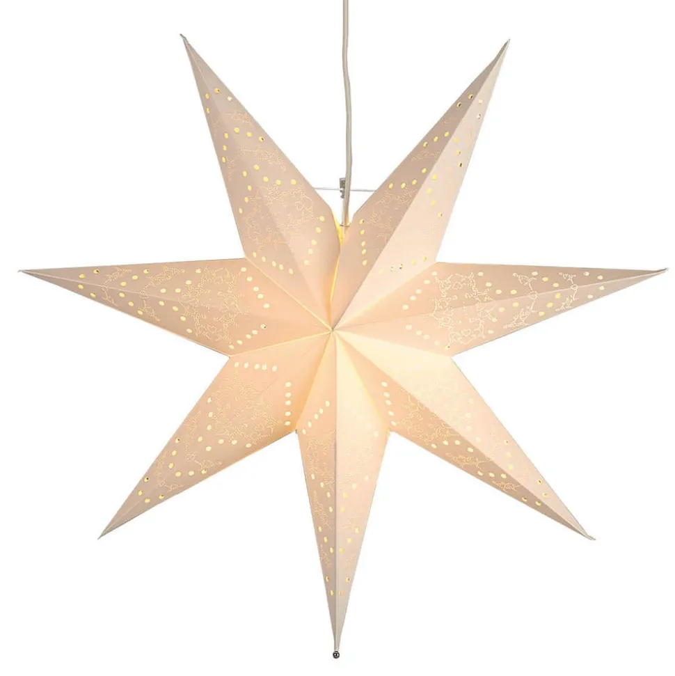 Deze fraai gevormde, zevenpuntige ster heeft een diameter van 54 cm en is zowel een mooie raamdecoratie als een fraaie versiering voor uw woonruimte tijdens de winter- en kerstperiode. Deze lamp is voorzien van een geïntegreerde E14 fitting met stroomkabel. Een geschikte lamp kan via de accessoires worden besteld. Het wordt niet meegeleverd.