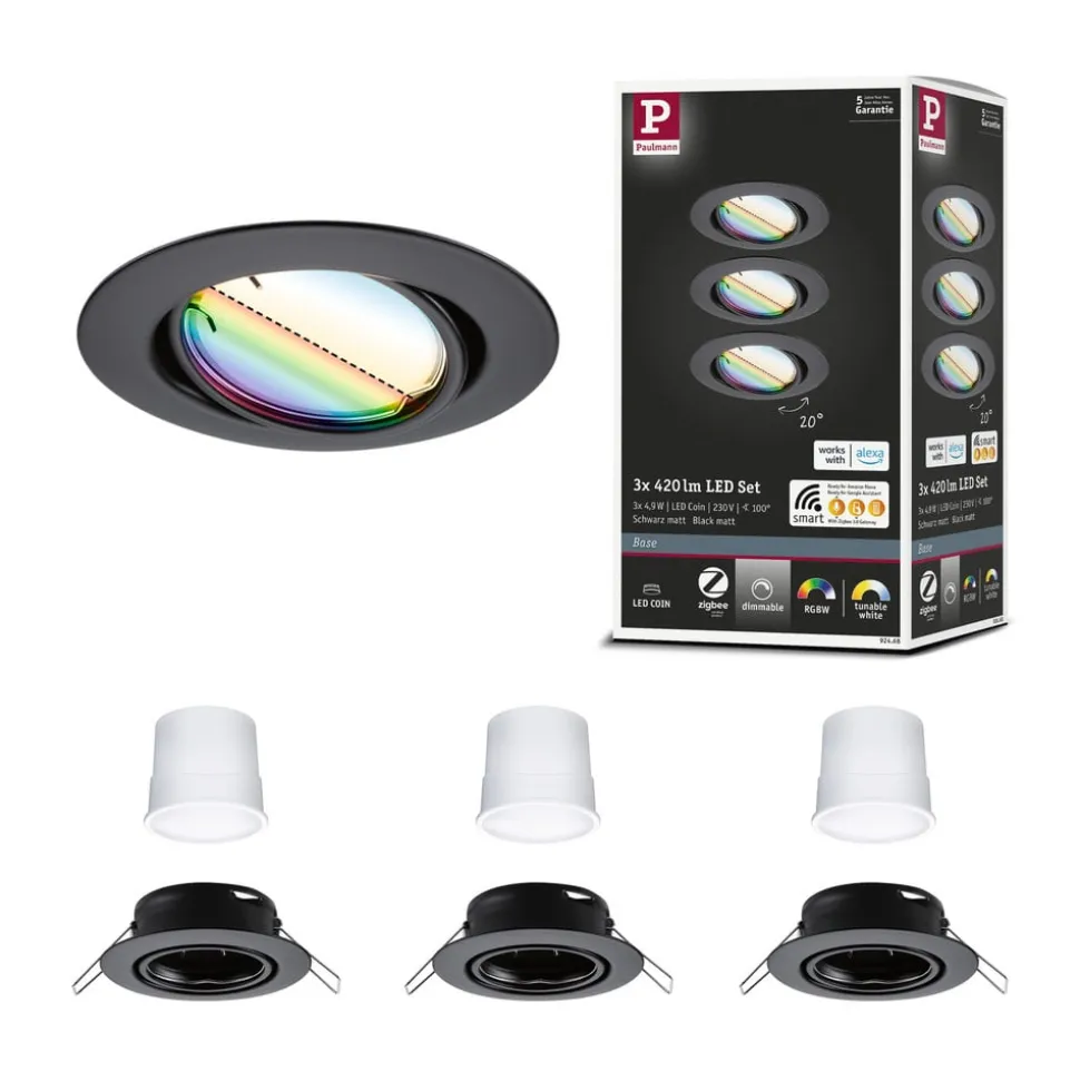 Paulmann Coin Base LED inbouwspot zwart 3 RGBW ZigBee