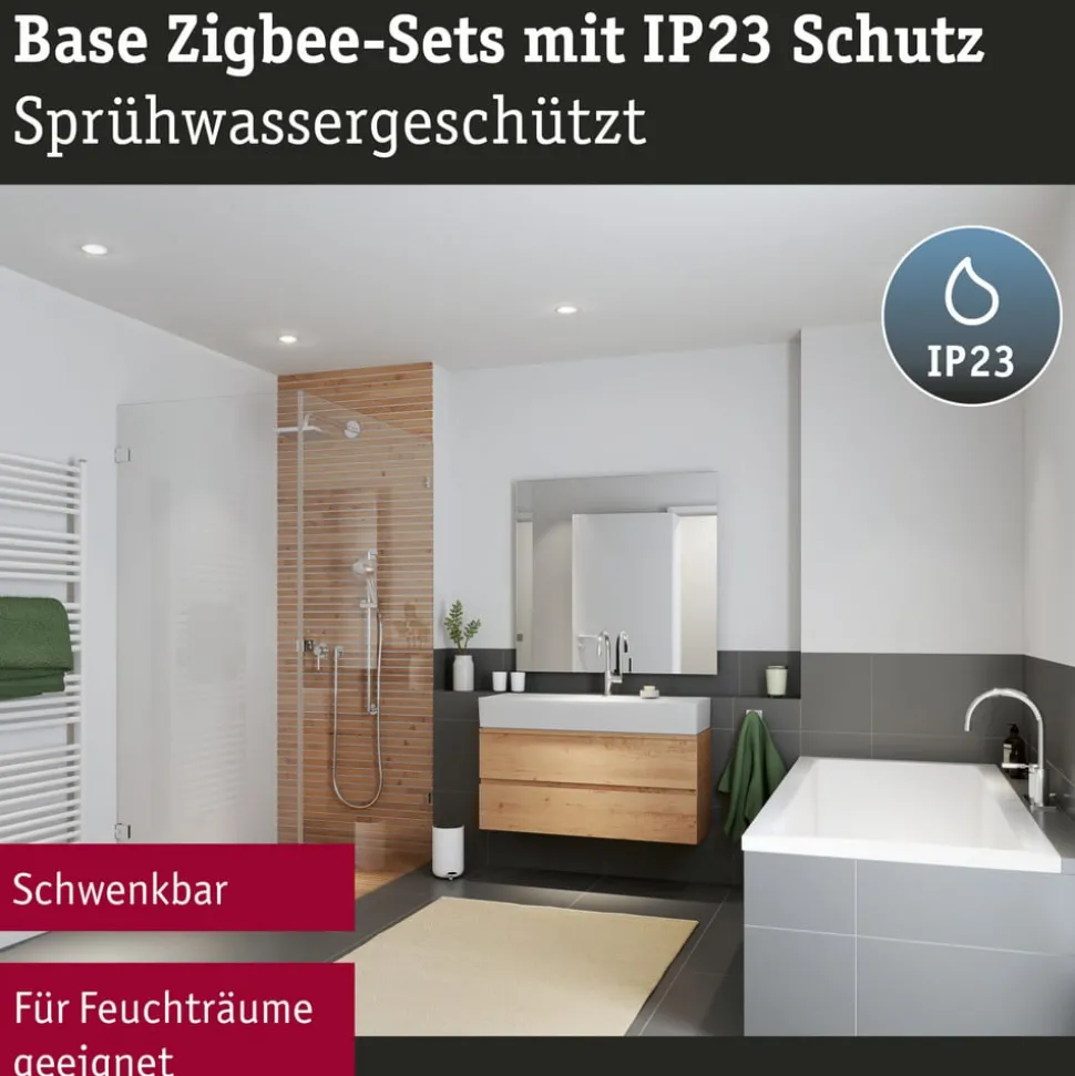 CCT en RGB functie: smart Coin Base LED inbouwspot in een Set van 3, draaibaar, ZigBee Ervaar een fascinerende verlichtingssfeer met de smart Paulmann Coin Base LED inbouwspot van metaal! Coin Base is hier verkrijgbaar in een praktische 3-pack. Die geïntegreerde LED lichtbron zorgt voor veelzijdig, instelbaar licht. Met de CCT-functie voor instelbare witte tinten en de RGB-functie met miljoenen kleurrijke lichtkleuren kan de lichtkleur individueel worden aangepast. De intensiteit van het licht kan ook traploos worden gedimd. Er is een ZigBee-compatibele Bridge nodig om de intelligente lichtregeling te gebruiken. De Smik gateway van Paulmann (zie accessoires) biedt nog veel meer mogelijkheden. Hij kan worden bediend met een gratis App (Android / iOS) en ook met spraakopdrachten (Amazon Alexa). Base Coin kan ook worden aangestuurd met andere op ZigBee gebaseerde smart home-systemen. Die kan volledig zonder Bridge worden bediend met SMART+ handzenders. De Gent afstandsbediening van Paulmann, die ook apart kan worden gekocht als accessoire, is hier een goede keuze. Het moderne design van de Coin Base LED inbouwspot is perfect voor de woonkamer, slaapkamer of hal. De spot kan ook worden gedraaid zodat het licht naar wens kan worden gericht. Technische kenmerken / compatibiliteit – praktische SETE – compatibel met ZigBee 3.0 – instelbare witte tinten (3.000 – 6..500 K) en gekleurde lichtkleuren selecteerbaar (na integratie in een SMART+ systeem) – traploos dimbaar (na integratie in een SMART+ systeem) – compatibel met op ZigBee gebaseerde SMART+ systemen zoals Philips Hue of IKEA Tradfri – compatibel met Paulmann smart home afstandsbediening en wandschakelaar (zie accessoires) – radiobereik: 20 m – zwenkbare spot (20°) Opmerking: om de intelligente lichtregeling (dimmen, CCT/RGB, bediening via App, etc.) te gebruiken, is een aparte ZigBee 3.0 compatibele afstandsbediening nodig.voor gebruik van de intelligente lichtregeling (dimmen, CCT/RGB, bediening via app, etc.) is een aparte ZigBee bridge of ZigBee handzender nodig (zie accessoires).