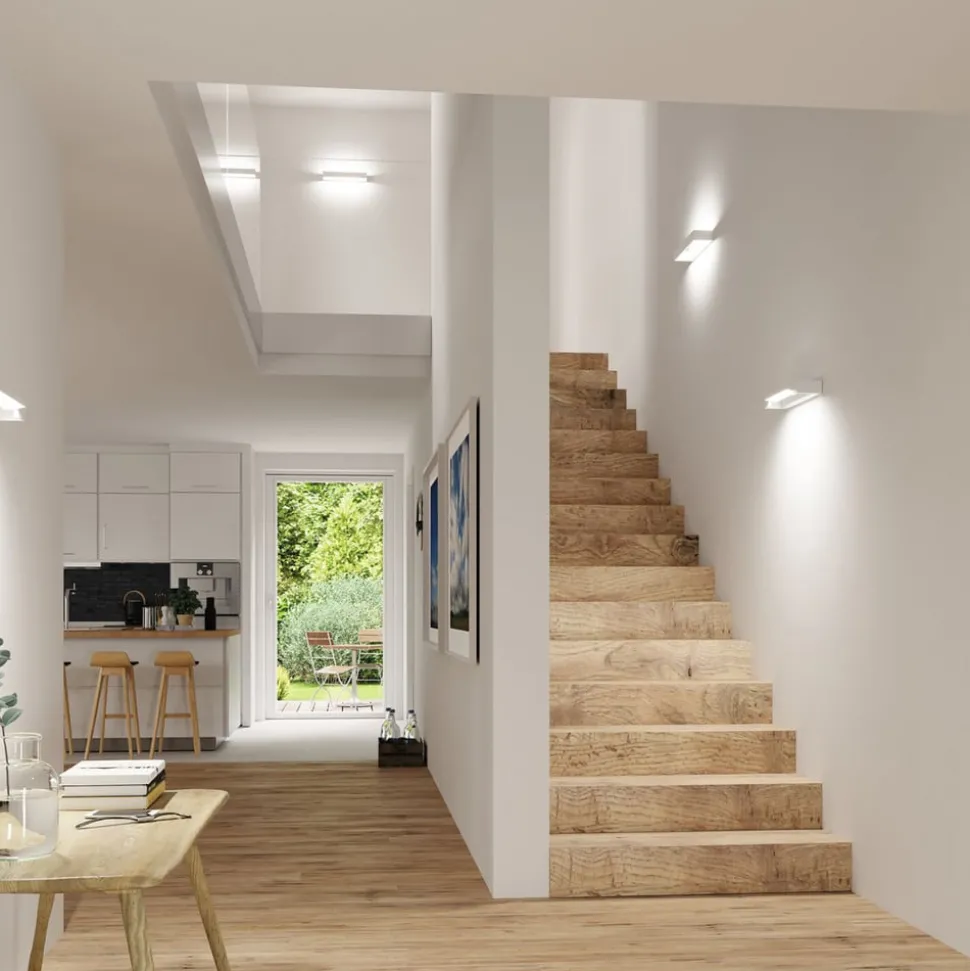 Als spiegelverlichting in de badkamer, maar ook als sfeervolle lichtbron in andere ruimtes zoals de woonkamer of hal, slaat de LED wandlamp Lucille een fraai figuur en zorgt voor een aangenaam warm wit licht. Dankzij de kantelbaarheid van het lichtelement kan de lichtbundel naar wens worden gevarieerd – direct, indirect of gelijkmatig naar boven en beneden – en kan het lichtelement steeds opnieuw worden ingesteld om interessante lichteffecten te creëren of om de spiegel perfect te verlichten. De armatuur kan in drie stappen worden gedimd door meerdere malen op de lichtschakelaar te drukken, wat nog meer flexibiliteit biedt bij het lichtontwerp. De geheugenfunctie onthoudt de laatst gekozen helderheidsinstelling en laat de armatuur bij het volgende inschakelen in deze helderheid schijnen.