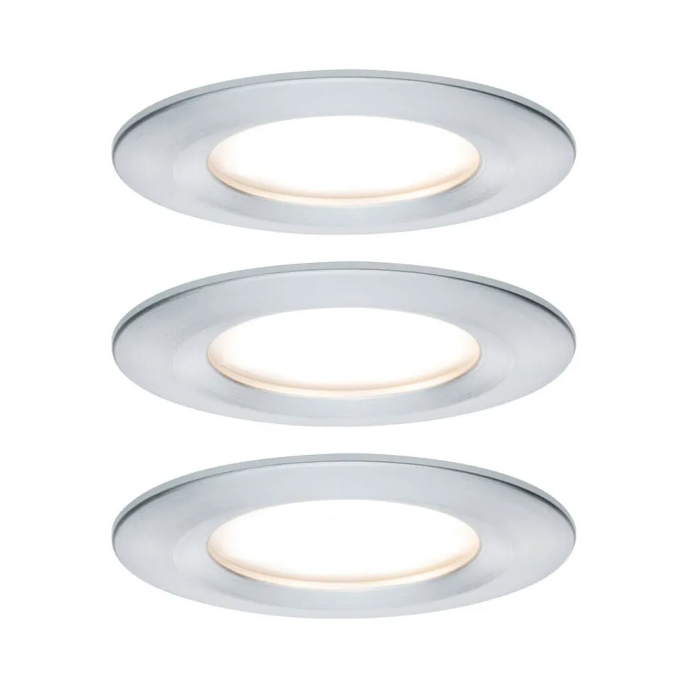 Puristic LED-inbouwspot Nova, stijf, aluminiumkleurig, in set van 3