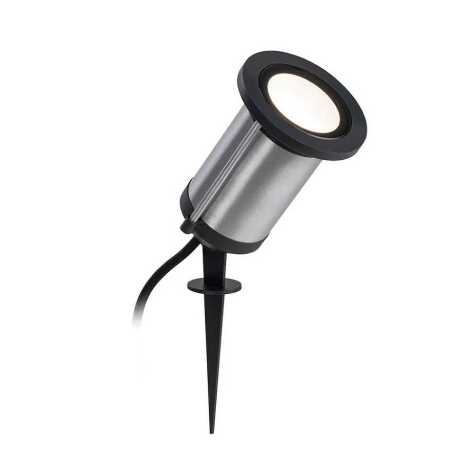 Ronde LED grondspies Classic met gericht licht De smalle stralingshoek van 32°, de draaibare kop en het weerbestendige ontwerp maken de Classic grondspies de ideale keuze voor het accentueren van gevels, sculpturen en planten met het Plug & Shine systeem. De cilindrische kop van geborsteld metaal heeft antracietkleurige ringen aan de Basis en rond de lichtuitstraling – Met een bedrijfsspanning van 24 V en waterbeschermde kabels, aansluitingen en armaturen is Plug & Shine van Paulmann een veelzijdige en veilige verlichtingsoplossing voor buiten.