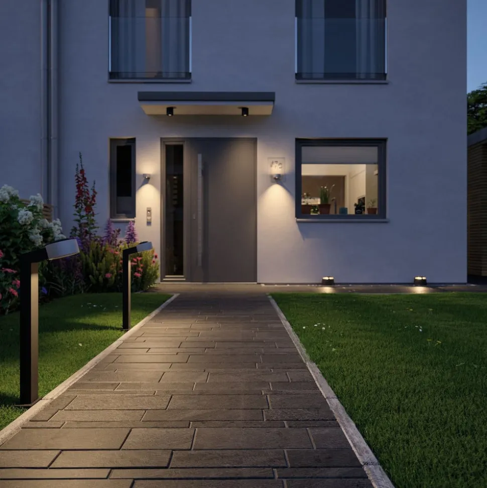 2-lamps LED vloerlamp 93917 Plug & Shine met indirecte lichtuitstraling Visueel onopvallend overdag, met niet-verblindend oriëntatielicht in het donker en veelzijdig en praktisch dankzij Plug & Shine – zo presenteert zich de 93917 vloerlamp van antracietkleurig gegoten aluminium. De behuizing in de vorm van een afgeknotte kegel is aan de bovenkant voorzien van twee platte openingen waardoor het licht van de LED’s indirect in de buitenruimte wordt uitgestraald.