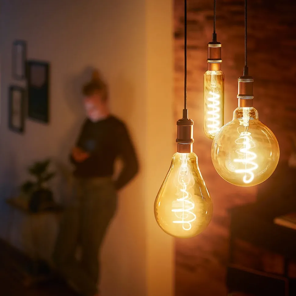 E27 LED globe lamp 7W met gouden glas van Philips Deze zeer decoratief vormgegeven, extra grote LED globe lamp is bijzonder inspirerend in armaturen waar hij zichtbaar is, zoals in de hanglamp of tafellampen die uitsluitend uit een fitting bestaan. De uniek ontworpen LED’s bieden onmiddellijk volledige helderheid, met een extra warm witte lichtkleur van 1.800 K. De LED-glaslamp verspreidt zacht, gelijkmatig licht dat stijlvolle charme uitstraalt en het huis gezellig maakt. Deze lamp voldoet aan de door Philips ontwikkelde EyeComfort-criteria. Het produceert een licht dat gemakkelijk is voor de ogen