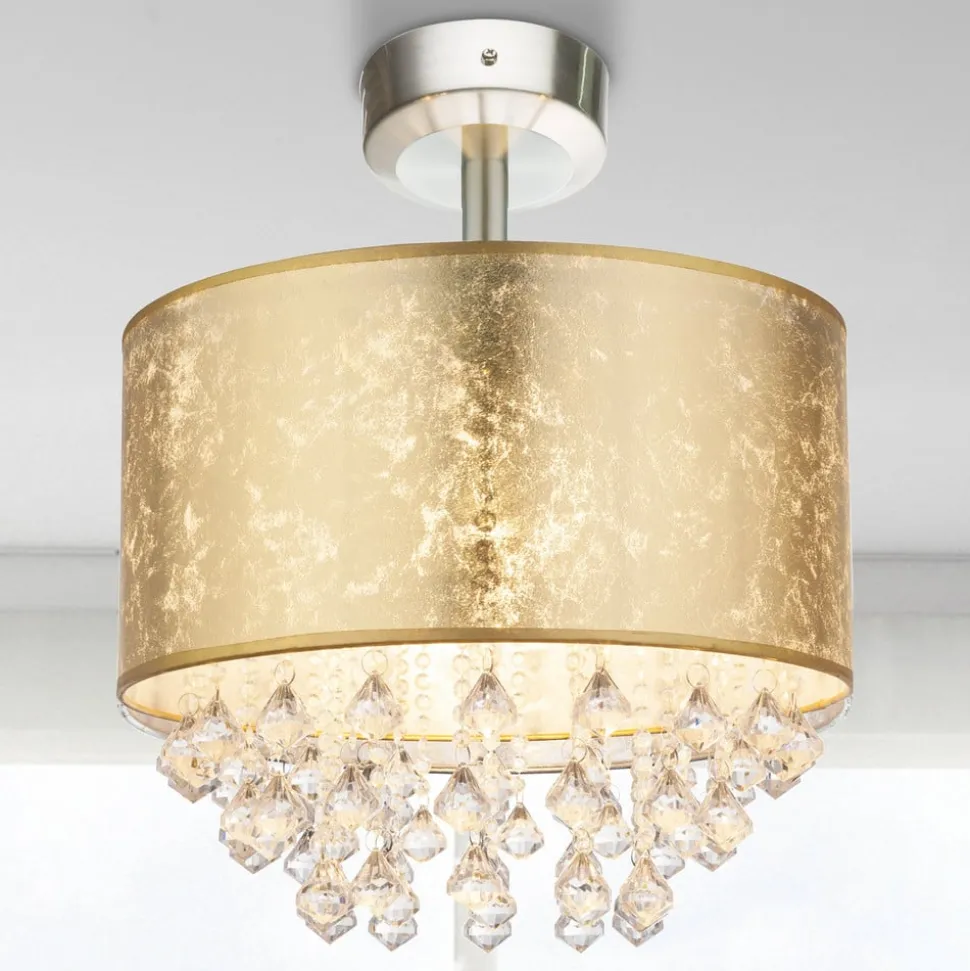 Plafondlamp Amy met acrylkristallen, bladgoud