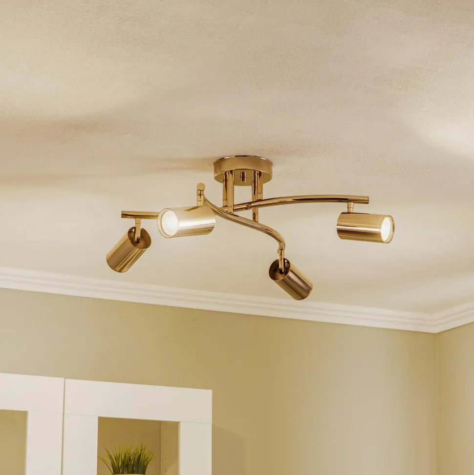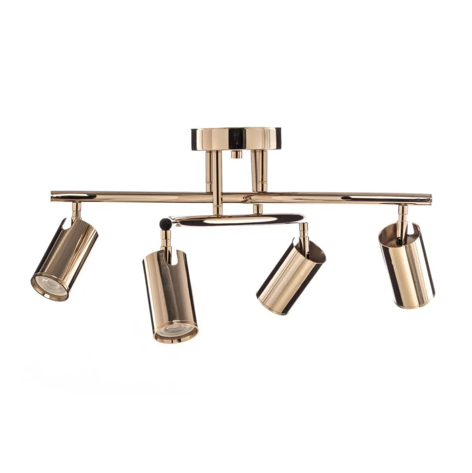 De plafondspot Spotte in goud combineert een modern design met functionele verlichting. Deze 4-lamps spot is gemaakt van hoogwaardig metaal en geproduceerd in Europa. Hij valt op door zijn stijlvolle uitstraling en de mogelijkheid om verschillende woonruimtes, zoals de woonkamer, eetkamer, keuken en hal, optimaal te verlichten. De gouden kleur geeft elke ruimte een warme en luxueuze sfeer, terwijl de moderne stijl zorgt voor eigentijdse accenten.