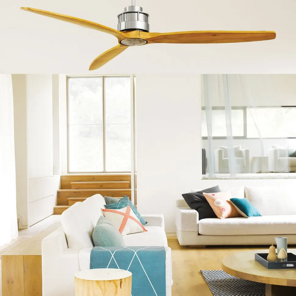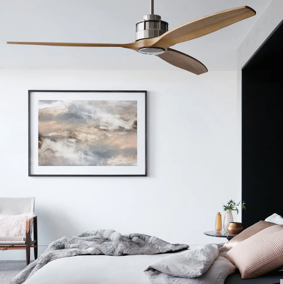 Airfusion Akmani plafondventilator met stille gelijkstroommotor De Airfusion Akmani plafondventilator met massieve houten bladen in teaklook is een echte blikvanger. Hij wordt ook gekenmerkt door de bijzonder stille werking van de energiebesparende gelijkstroommotor, waardoor hij ideaal is voor gebruik in slaapkamers en ontspanningsruimtes.