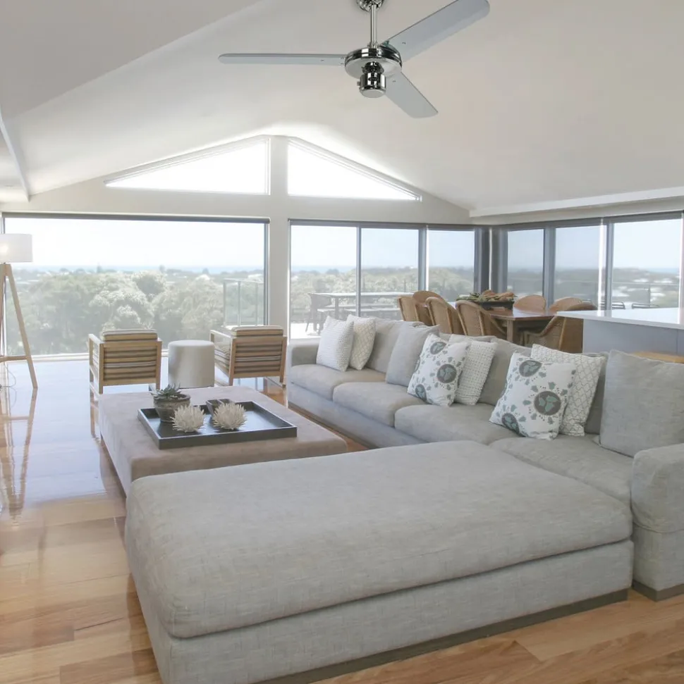 Hellingshoek van de vleugels 14°, afstand van plafond tot vleugelbladen 25 cm
