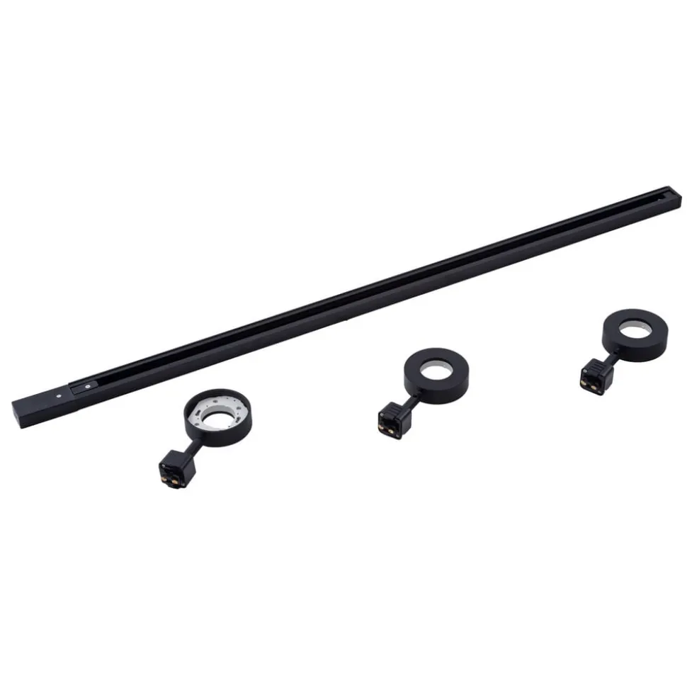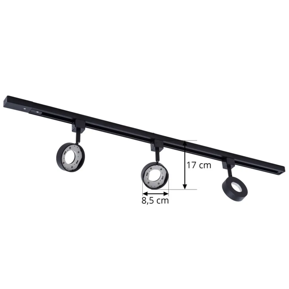 Zwart railsysteem Jardani met beweegbare spots Jardani is een modern railsysteem met één circuit en is gemaakt van aluminium. Het heeft een zwart oppervlak en bestaat uit drie spots en een rail. De spots kunnen worden uitgerust met GX53 lampen en maken een vrije keuze van lichtkleur mogelijk – perfect aanpasbaar aan persoonlijke wensen. Bovendien kunnen de spots 350° worden gedraaid en 90° worden gekanteld, zodat de lichtstraal naar wens kan worden gericht. Jardani is ideaal voor het verlichten van commerciële ruimtes.