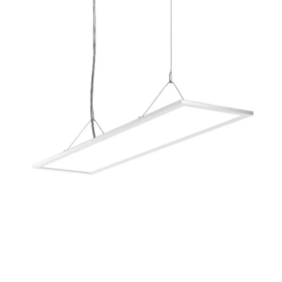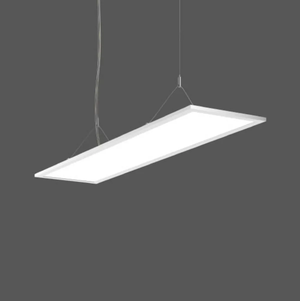 Sidelite Eco LED hanglamp in rechthoekige vorm met opalen diffuser De Sidelite Eco hanglamp creëert een lichtwereld die nauwelijks zuiniger en vooruitstrevender kan zijn, vooral – maar zeker niet alleen – in kantoor- of vergaderruimtes. De pendelarmatuur straalt een buitengewoon helder en homogeen licht uit dankzij de RZB Sidelight technologie, die de armatuur via zijdelingse lichtkoppeling voedt en hoogwaardig, helder licht genereert. Die rechthoekige armatuur met een wit gepoedercoat aluminium frame en een opaalwitte afdekking heeft een zeer vlak design en lijkt bijna te zweven in de ruimte dankzij de Filigran 2-punts stalen kabelophanging. De diffuser en lichtgeleider van de armatuur zijn gemaakt van niet-vergelend kunststof (PMMA). De hanglamp is uitgerust met de MultiLumen-functie, de lichtopbrengst kan in vier fasen worden aangepast met behulp van twee in de armatuur ingebouwde regelaars.