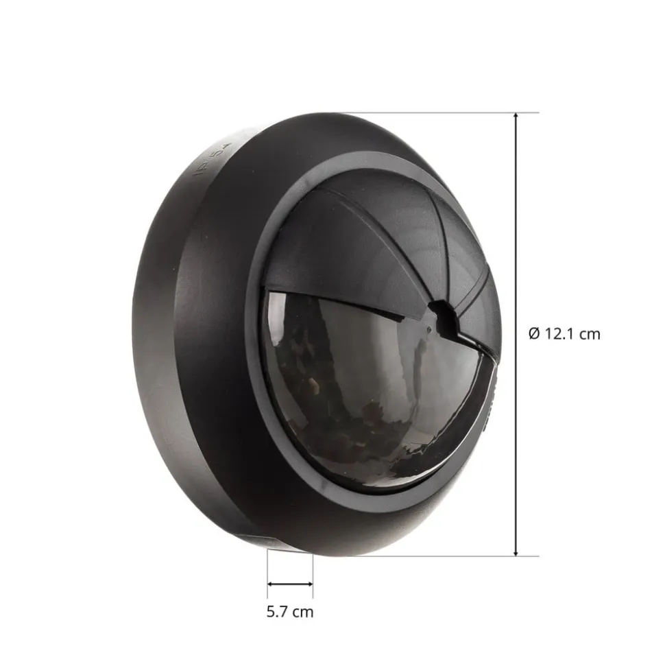 Deze bewegingsmelder is ideaal voor het regelen van verlichting buitenshuis. Het kan gemakkelijk worden gemonteerd onder luifels of veranda’s, waar het meer veiligheid biedt in het donker. Hij scoort met een detectiehoek van 360°. De belichtingstijd van de desbetreffende lichtbron kan variabel worden ingesteld tussen 5 s en 15 min. De behuizing is rondom zwart, zodat de detector discreet opgaat in het exterieurdesign.