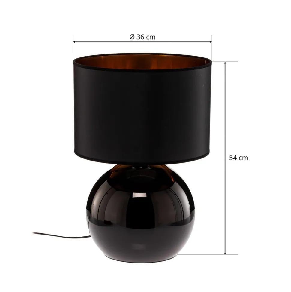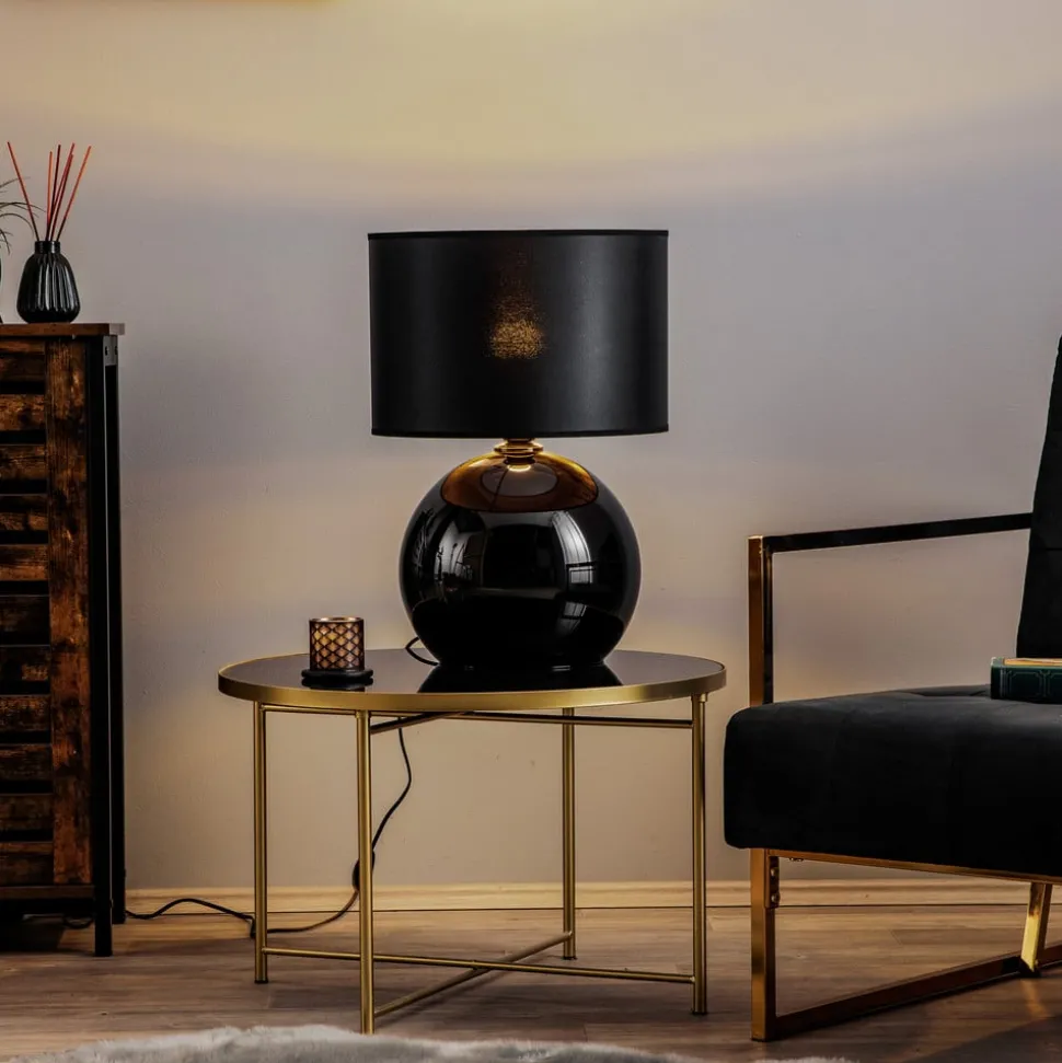 De tafellamp Palla combineert edele materialen zoals glas, stof, metaal en kunststof tot een harmonieus geheel. Met zijn elegante design in zwart en goud past hij naadloos in verschillende woonruimtes, of het nu in de woonkamer, slaapkamer of eetkamer is. De zorgvuldige afwerking en de in Europa vervaardigde kwaliteit onderstrepen het exclusieve karakter van deze lamp.
