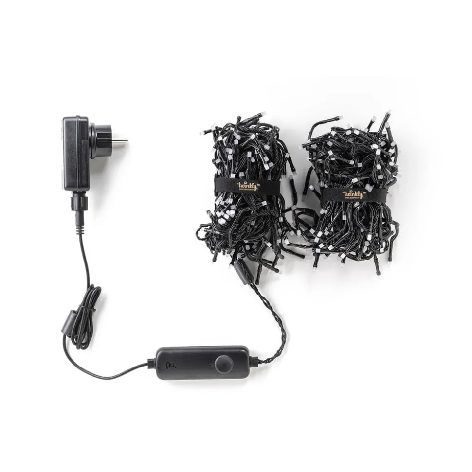 Twinkly lichtketting voor slimme, regelbare, kleurrijke decoratieve verlichting in huis en tuin De Twinkly LED lichtketting, die in elke kleur kan worden verlicht en waarvan de LED’s zijn bevestigd aan kabels die aan beide zijden van de hoofdstreng aftakken, is creatief, modern en effectief. Dankzij de ingebouwde mini-WiFi- en Bluetooth-module kan hij worden bediend met een app of spraakopdracht, in de eerste plaats met de Twinkly-app, waarmee vooraf geconfigureerde patronen en dynamische sequenties kunnen worden geselecteerd en gevarieerd (via “FX Wizard”). Het biedt ook de vrije creatie van individuele combinaties van kleur, helderheid, patroon, rotatie en snelheid van verandering. Dit is mogelijk omdat elke zichtbare LED wordt vastgelegd door de smartphonecamera en in kaart wordt gebracht door de app. De meegeleverde controller is alles wat nodig is om de ketting aan en uit te zetten en de beschikbare programma’s af fabriek te selecteren. Verschillende twinkly items kunnen overzichtelijk worden beheerd, gegroepeerd en hun instellingen kunnen worden opgeslagen in de cloud met behulp van de meegeleverde Twinkly webapplicatie.
