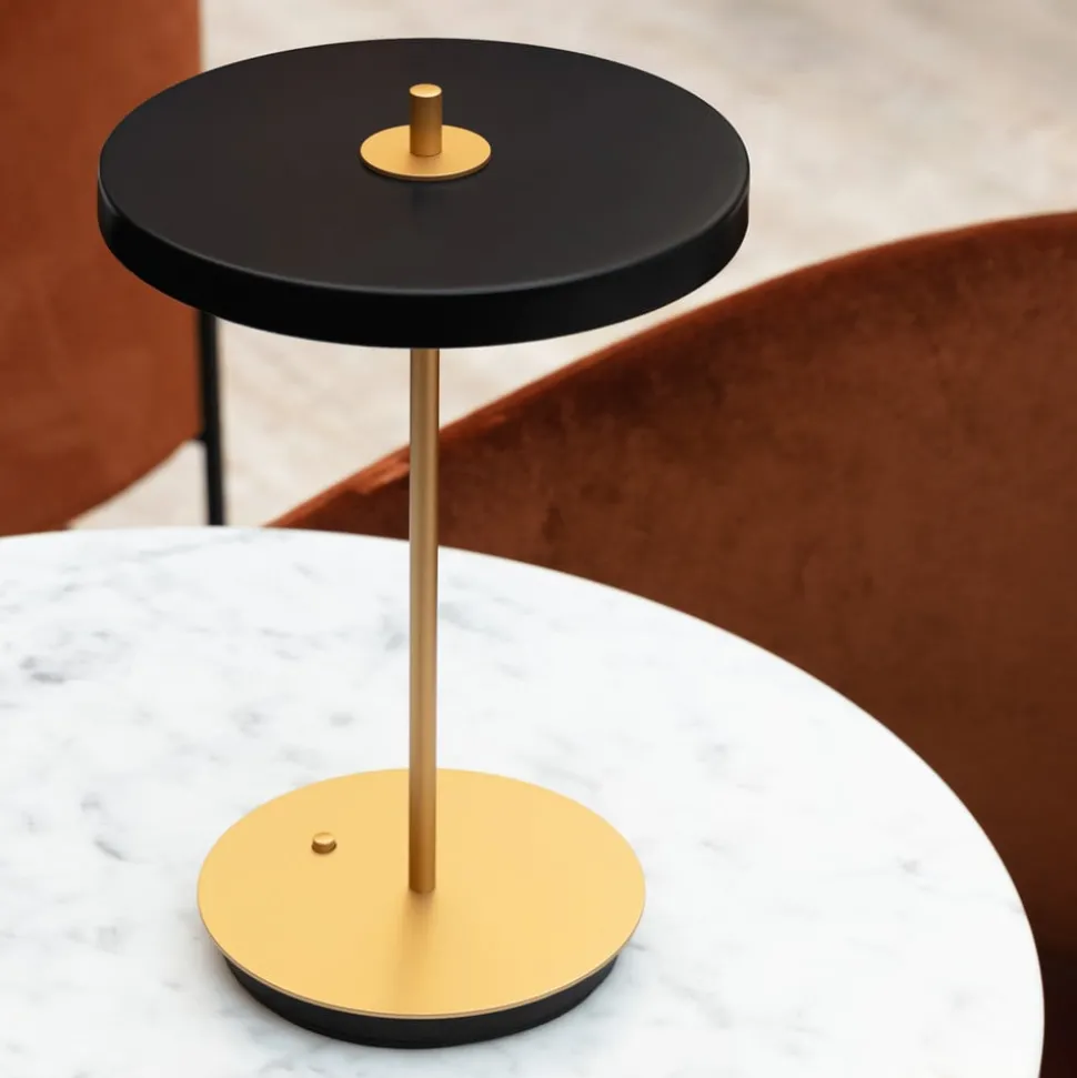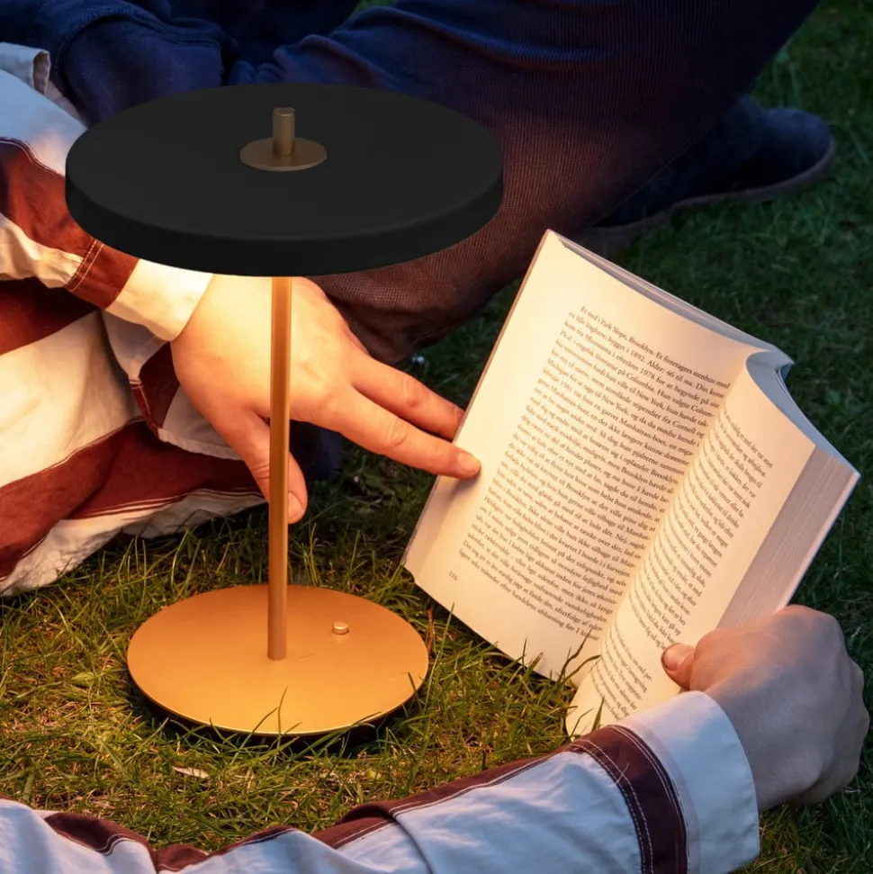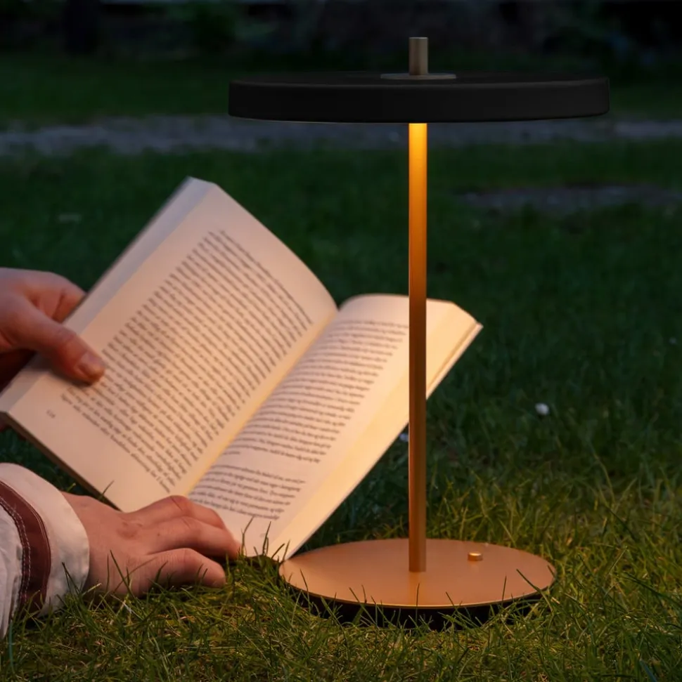 LED tafellamp Asteria Move met oplaadbare batterij voor draagbare functie Sierlijk en uitgerust met een ongelooflijke bewegingsvrijheid, kan de LED tafellamp Asteria Move van het Deense designhuis UMAGE overal in huis worden gebruikt. Dankzij de ingebouwde lithium-ion batterij kan de lamp gemiddeld tot 35 uur licht geven zonder stroomaansluiting. De batterij kan worden opgeladen via een USB-C kabel. De ronde kap bevat warmwitte LED’s die een gezellig en comfortabel licht uitstralen dat niet verblindt, zacht is en gelijkmatig wordt verdeeld over alle zijden dankzij de geïntegreerde diffuser. Met de touchdimmer op de ronde, massieve voet kan het licht worden gedimd tot vier verschillende helderheidsniveaus door meerdere keren op de schakelaar te drukken. De Asteria-collectie is ontworpen door medeoprichter en Chief Creative Developer, Søren Ravn Christensen. De ontwerper is autodidact en heeft de zeldzame gave om design en economie te combineren. Hij zegt over zijn collectie: “De Asteria-collectie, gecreëerd op het raakvlak van design, technologie en vakmanschap, heeft geïntegreerde LED lampen in een slanke, minimalistische vorm.” Samen met de huidige CEO, Jacob Nannestad Hansen, richtte Christensen in 2008 het bedrijf UMAGE by VITA copenhagen op. De fabrikanten van design lampen leggen bij de productie van hun armaturen bijzondere nadruk op duurzame materialen en hoogwaardige technologie om klanten het grootst mogelijke voordeel te bieden. Het concept is succesvol. Het Deense verlichtingsbedrijf heeft nu meer dan 1.500 vestigingen in meer dan 50 landen over de hele wereld – draagbaar – werkt op batterijen – helderheid instelbaar in vier niveaus: 1e niveau 5 lumen ca. 168 uur 2e niveau 20 lumen ca. 50 uur 3e niveau 50 lumen ca. 20 uur 4e niveau 100 lumen ca. 10 uur