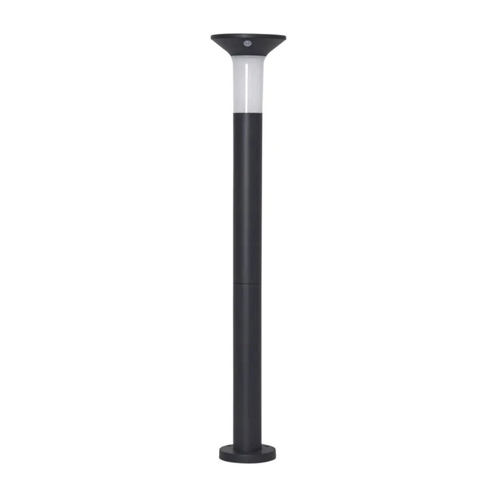 In hoogte verstelbare LED tuinpadverlichting Valta met zonne-energie De Valta LED tuinpadverlichting op zonne-energie in een subtiele grafietkleur is gemaakt van kunststof en heeft ook een opaalwitte kap. Dankzij de grondspies kan ze flexibel buiten worden geplaatst, maar ze mag niet op schaduwrijke plaatsen worden geïnstalleerd vanwege het zonnepaneel, dat zonne-energie nodig heeft. Bovendien bestaat de buislamp uit twee delen, waardoor de hoogte kan worden ingesteld tussen 55 en 90 cm. De tuinpadverlichting is uitgerust met een bewegings- en schemersensor. Dit zorgt ervoor dat hij aangaat in het donker en overdag uit blijft als hij niet wordt gebruikt. De bewegingsmelder detecteert beweging binnen een straal van 6-8 meter en een hoek van 120°. Wanneer er beweging wordt gedetecteerd, gaat Valta 30 seconden branden met 400 lumen. Daarna gaat een continu licht van 15 lumen aan – Een volledig opgeladen batterij geeft een verlichtingsduur van 5 uur – Kan op twee hoogtes worden gemonteerd: 55 cm of 90 cm