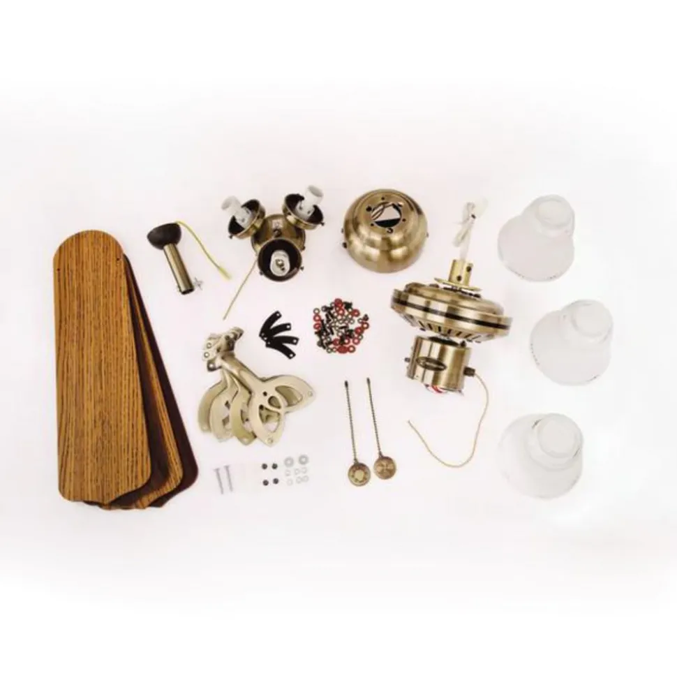 De Princess Trio plafondventilator van staal en kunststof biedt zowel visuele als functionele kwaliteit. Op het ventilatorhuis met antieke messing afwerking zijn drie lichten in edel opaalglas aangebracht. Ze zijn ontworpen voor lampen met E14 fitting.