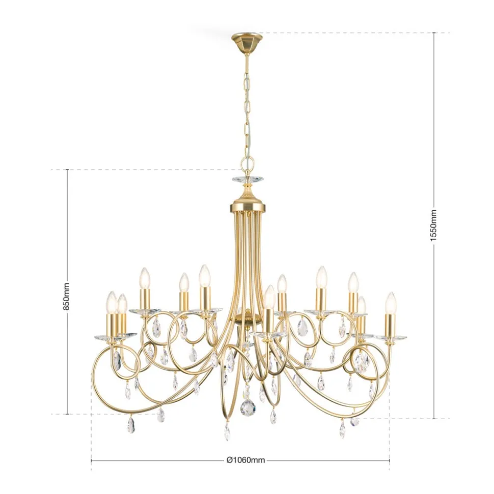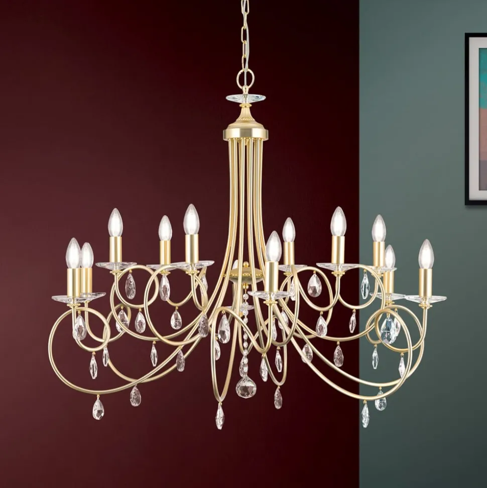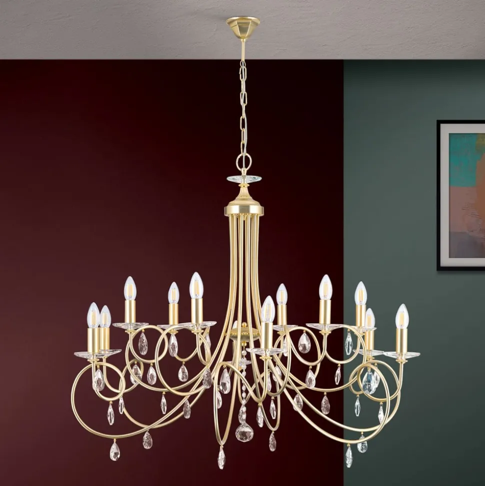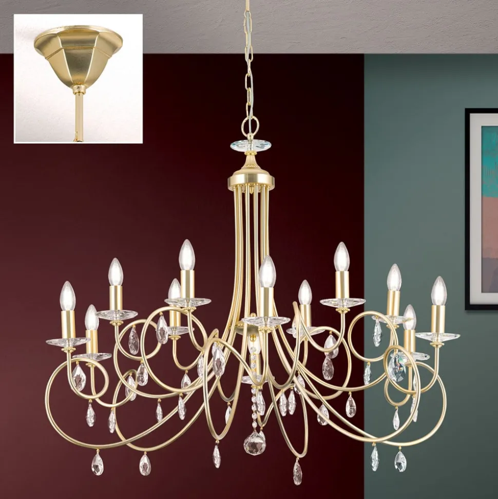 12-lichts kroonluchter VIOLETTA, met Swarovski-loodkristal Spectra, mat goud