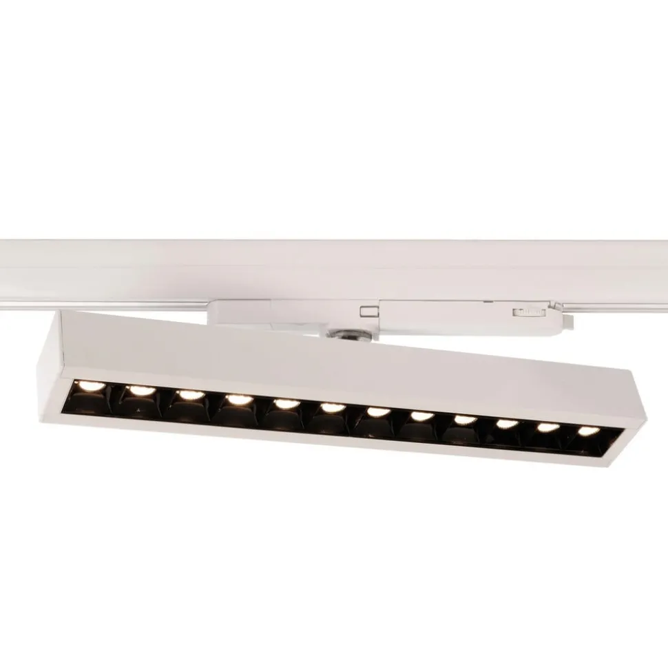 Draaibaar en zwenkbaar: Alnitak LED-armatuur voor 3-fase railsystemen, 4.000 K, 25-34 WDe Alnitak LED-armatuur, vervaardigd uit aluminium, kan worden gebruikt met 3-fase railsystemen. Het vermogen kan via een schakelaar worden ingesteld binnen een bereik van 25 – 34 W. Bovendien kan Alnitak worden gedraaid en gezwenkt. Zo kan het universele witte licht van de hoogwaardige SMD-LED’s optimaal worden afgestemd.Technische kenmerken:- Vermogen instelbaar via dipswitch (25 tot 34 watt)- Goede verblindingswaarde (UGR <16)- Incl. LED-driver