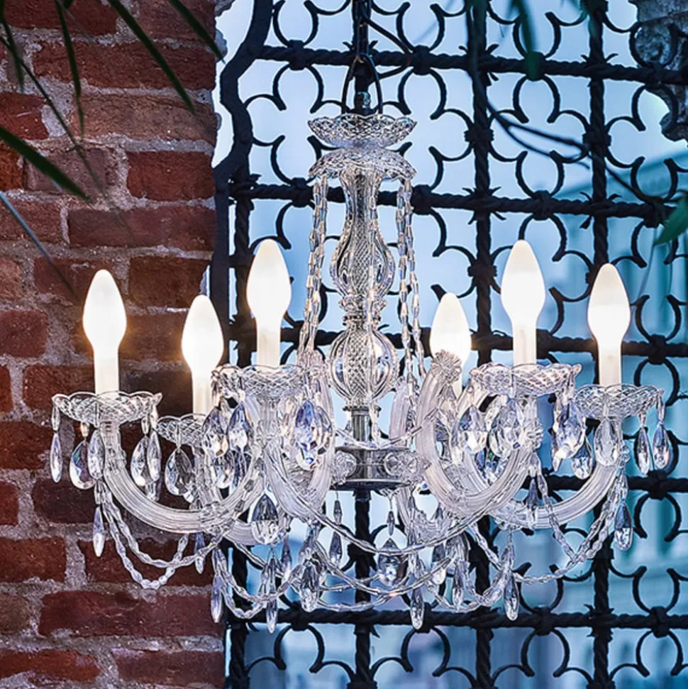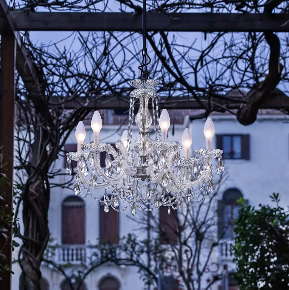 Exclusiviteit en elegantie en een fonkelende verlichting verspreid de LED kroonluchter Drylight S6, die uit hoogwaardige materialen in Italië vervaardigd wordt – een mooi fonkelende variant van de buitenverlichting.