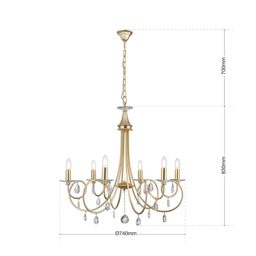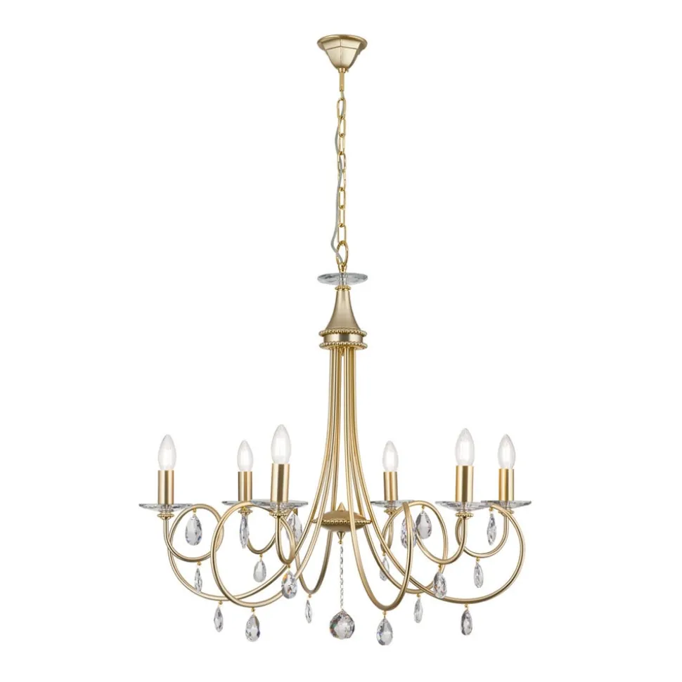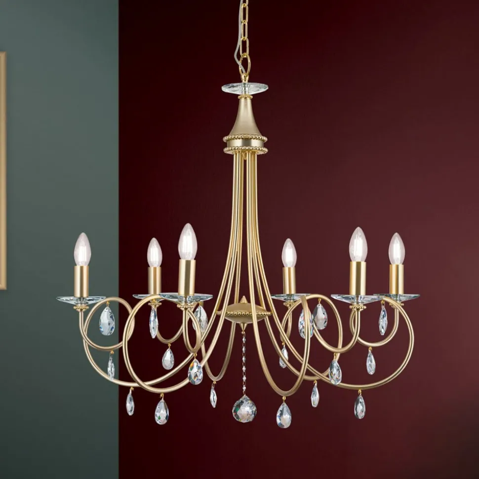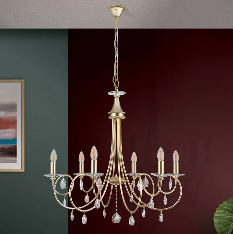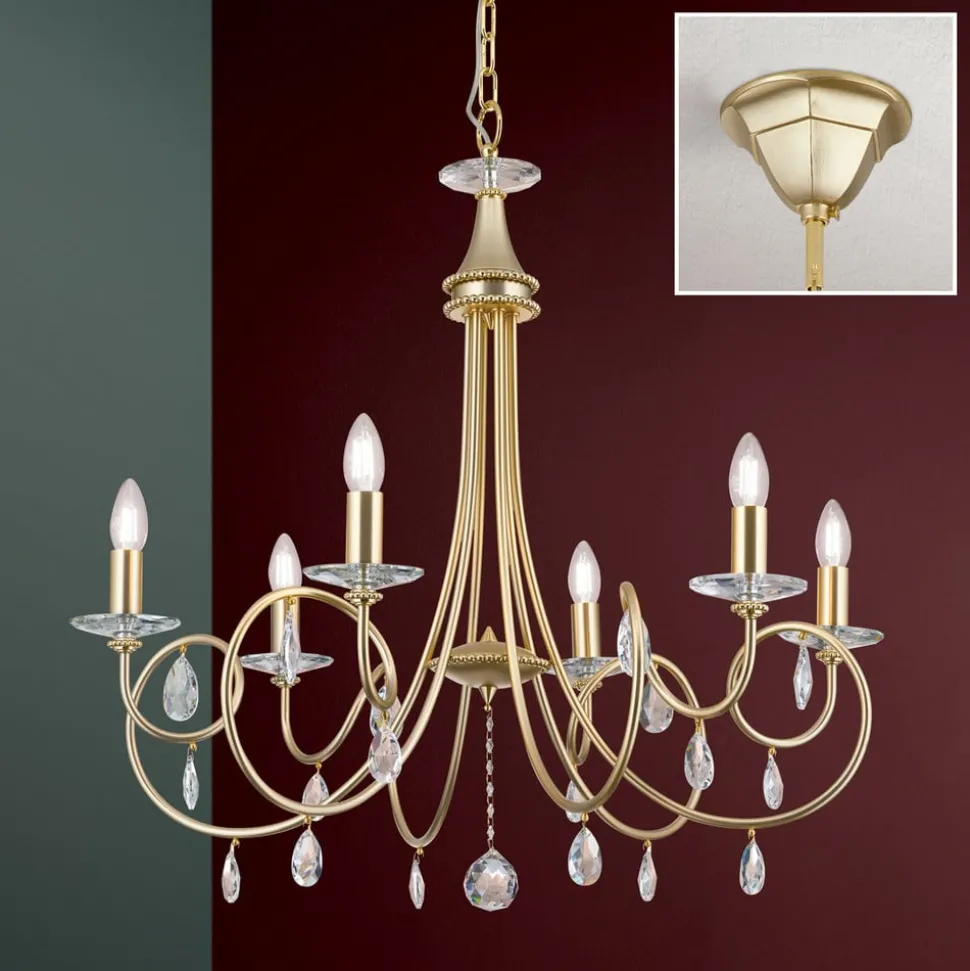 6-lichts kroonluchter VIOLETTA, met Swarovski-loodkristal Spectra, mat goud