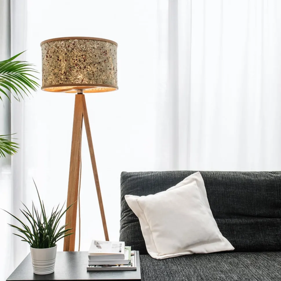Houten vloerlamp op drie poten 2610 met kap van echt alpenhooi