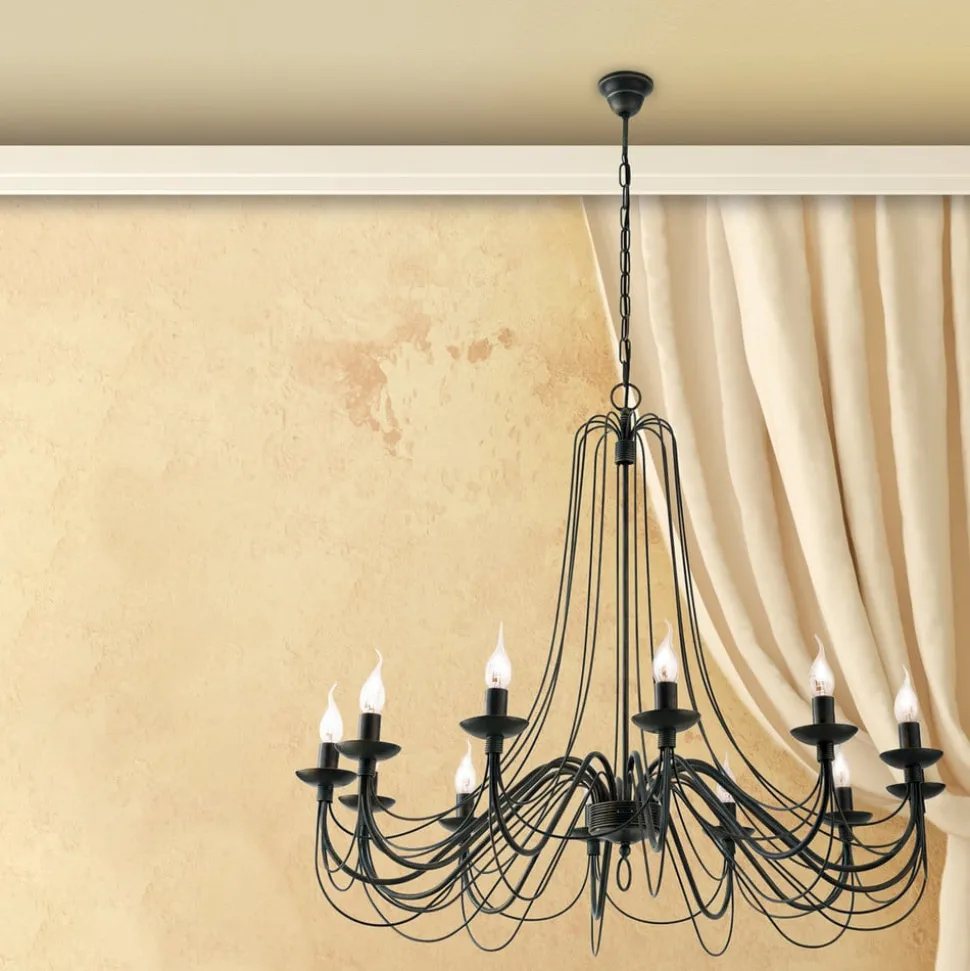 Een landelijk-rustieke omgeving biedt deze mooie kroonluchter met de overdadig gegolfde behuizing op feestelijke wijze behaaglijke feestverlichting. Met de antiek-zwarte look past de kroonluchter Antonina bij vele inrichtingskleuren en maakt ze een in zijn geheel stijlvolle indruk. Als lichtbronnen zijn E14-kaarslampen (40 watt) geschikt. Deze worden niet meegeleverd maar kunnen via accessoires gekocht worden.