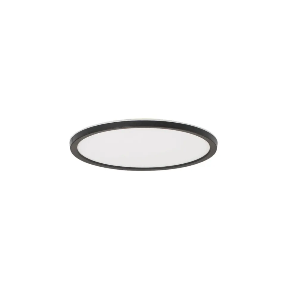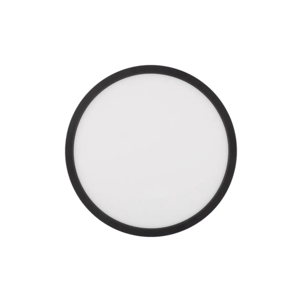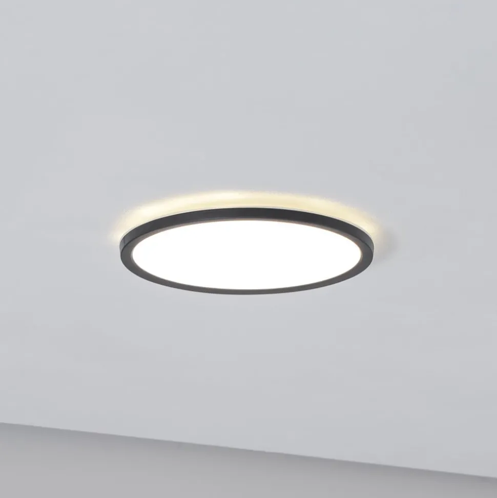 Rond Aqua LED paneel voor de badkamer, met zwart frame De Aqua LED plafondlamp is ontworpen als een plat opbouwpaneel in een ronde vorm. De diffuser van gesatineerde kunststof zorgt voor een brede lichtuitstraling en is omgeven door een zwart metalen frame. Dankzij de beschermingsgraad IP54 kan Aqua zonder aarzeling worden gebruikt in badkamers en sanitaire ruimtes – Lichttemperatuur van het licht kan worden ingesteld vóór ingebruikname (3.000 K / 4.000 K / 6.500 K) – Dimbaar: druk gewoon snel achter elkaar op de wandschakelaar