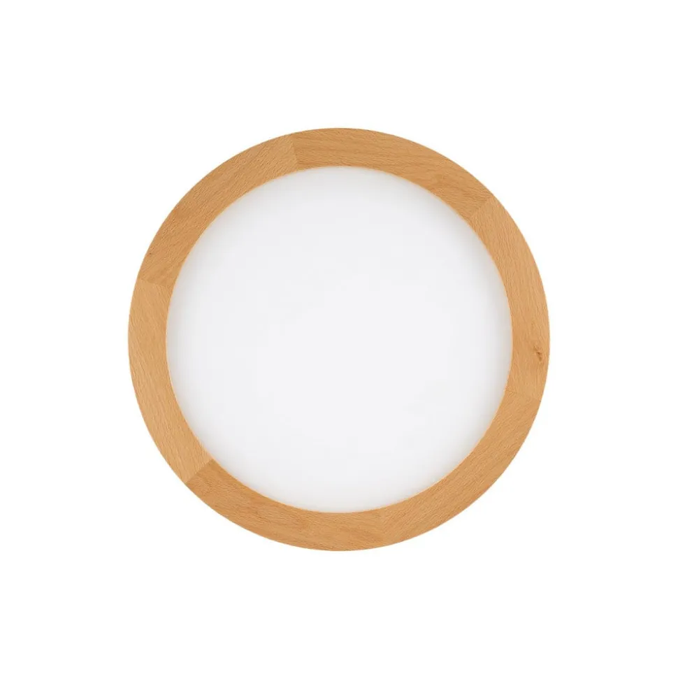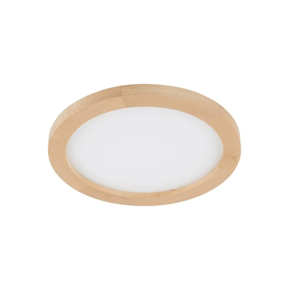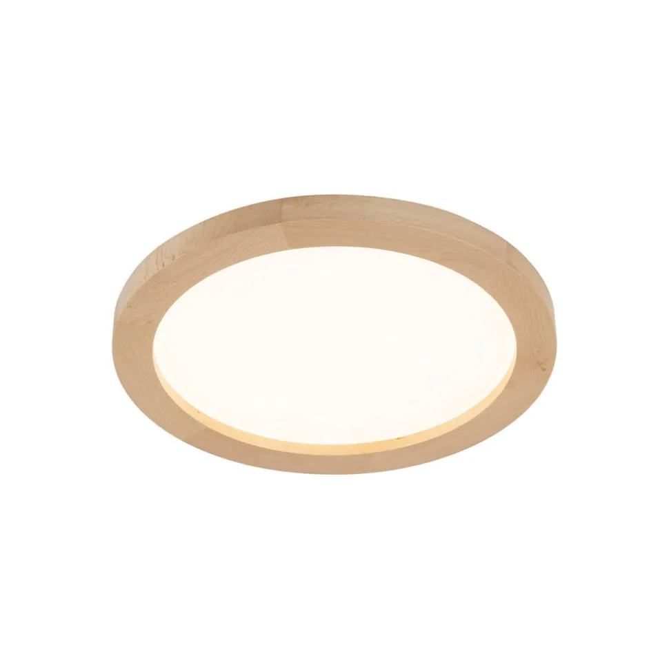 Rond Aqua LED paneel voor de badkamer, met beukenhout De Aqua LED plafondlamp is ontworpen als een plat opbouwpaneel in een ronde vorm. De diffuser van gesatineerde kunststof zorgt voor een groot lichtoppervlak en wordt omlijst door een frame van licht beukenhout. Kan zonder aarzeling worden gebruikt in badkamers en sanitaire ruimtes dankzij de beschermingsgraad IP64 – Lichttemperatuur van het licht kan worden ingesteld vóór ingebruikname (3.000 K / 4.000 K / 6.500 K)