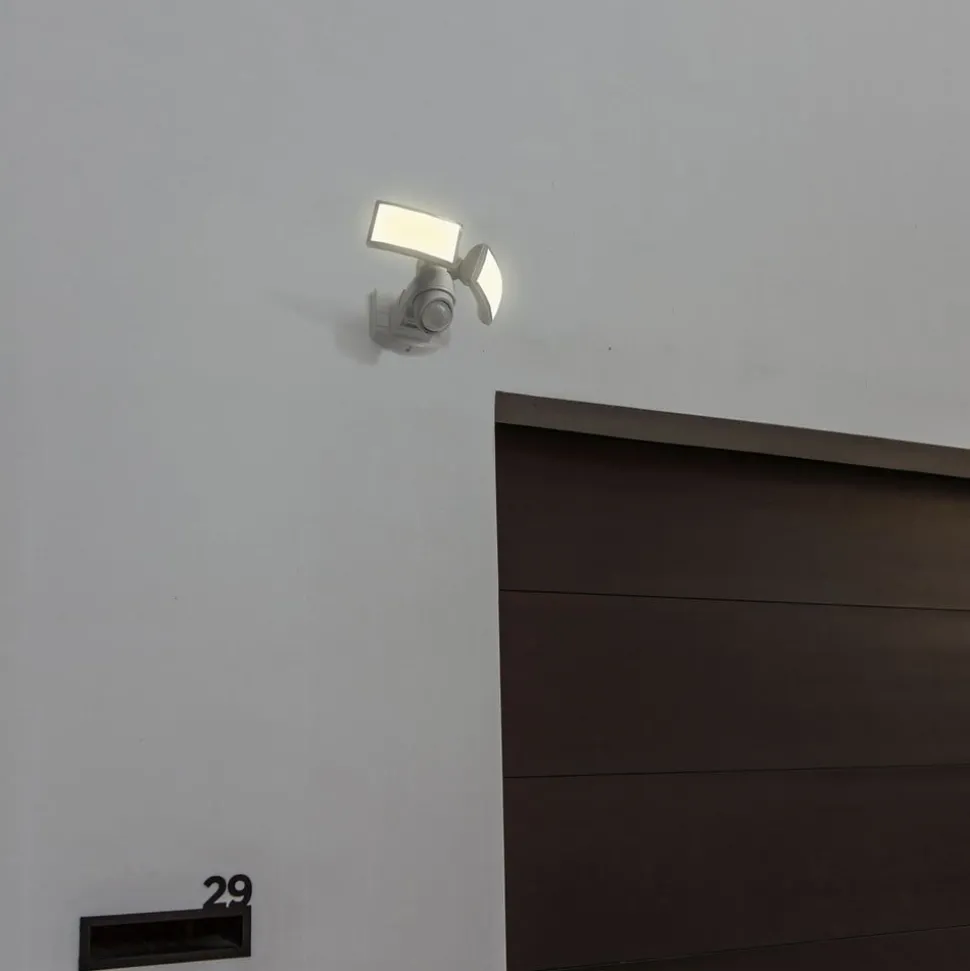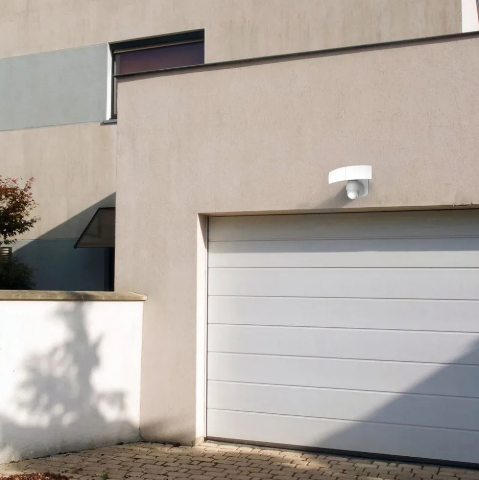 Veelzijdige, verstelbare Arc LED buitenwandspot in wit met bewegingsmelder De kunststof buitenwandspot is een meester in flexibiliteit. Zijn twee convex gebogen lampenkoppen kunnen onafhankelijk van elkaar gedraaid en gezwenkt worden om het universeel wit licht op de gewenste plaats te richten. De eronder geïntegreerde bewegingsmelder is ook verplaatsbaar, zodat er bijvoorbeeld geen rekening wordt gehouden met activiteiten op het naburige terrein – Detectiehoek: 180° – Bereik: 2 tot 12 m – Inschakelduur: 1 min / 3 min / 10 min – Schemerdrempel is vast ingesteld