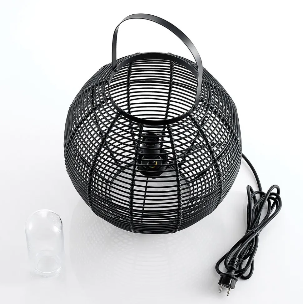 De Feysal tafellamp bestaat uit een ronde metalen lamphouder. Bovendien heeft de armatuur een praktische draaggreep, zodat hij snel en eenvoudig naar een nieuwe locatie kan worden verplaatst. De metalen stutten zijn verticaal en horizontaal bevestigd, waardoor een mooi patroon ontstaat. Het licht schijnt van binnen tegen het metaal aan, waardoor een prachtig samenspel van licht en schaduw ontstaat. Dankzij de beschermingsklasse IP44 kan de armatuur ook buiten worden gebruikt. De lichtbron wordt extra beschermd door een glasafdekking. De lichtbron is niet inbegrepen, maar u kunt wel bijpassende exemplaren bij de accessoires vinden.