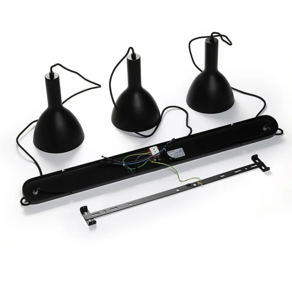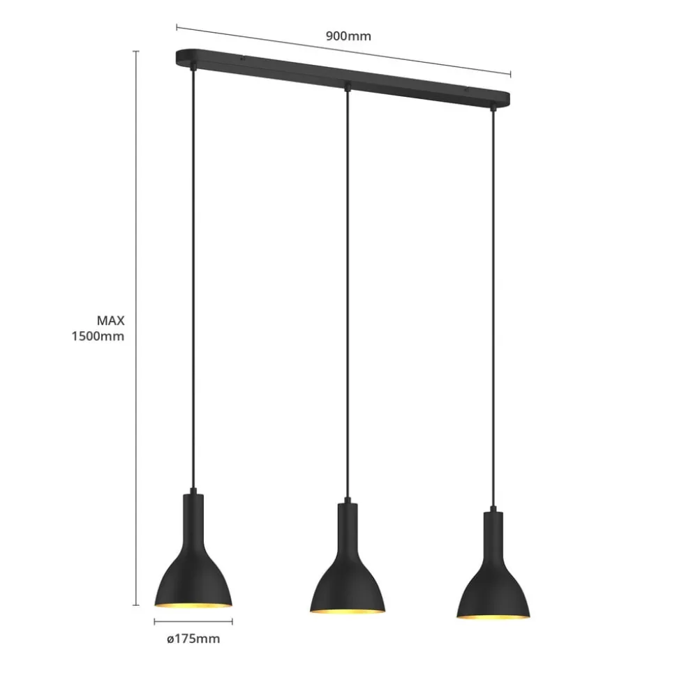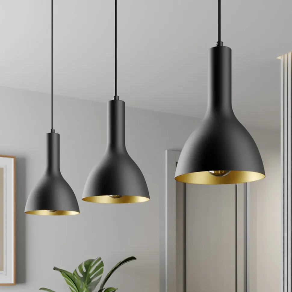 Zwart-gouden hanglamp Cosmina in 3-lamps uitvoering – ideaal voor eettafels en balies