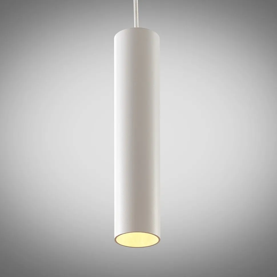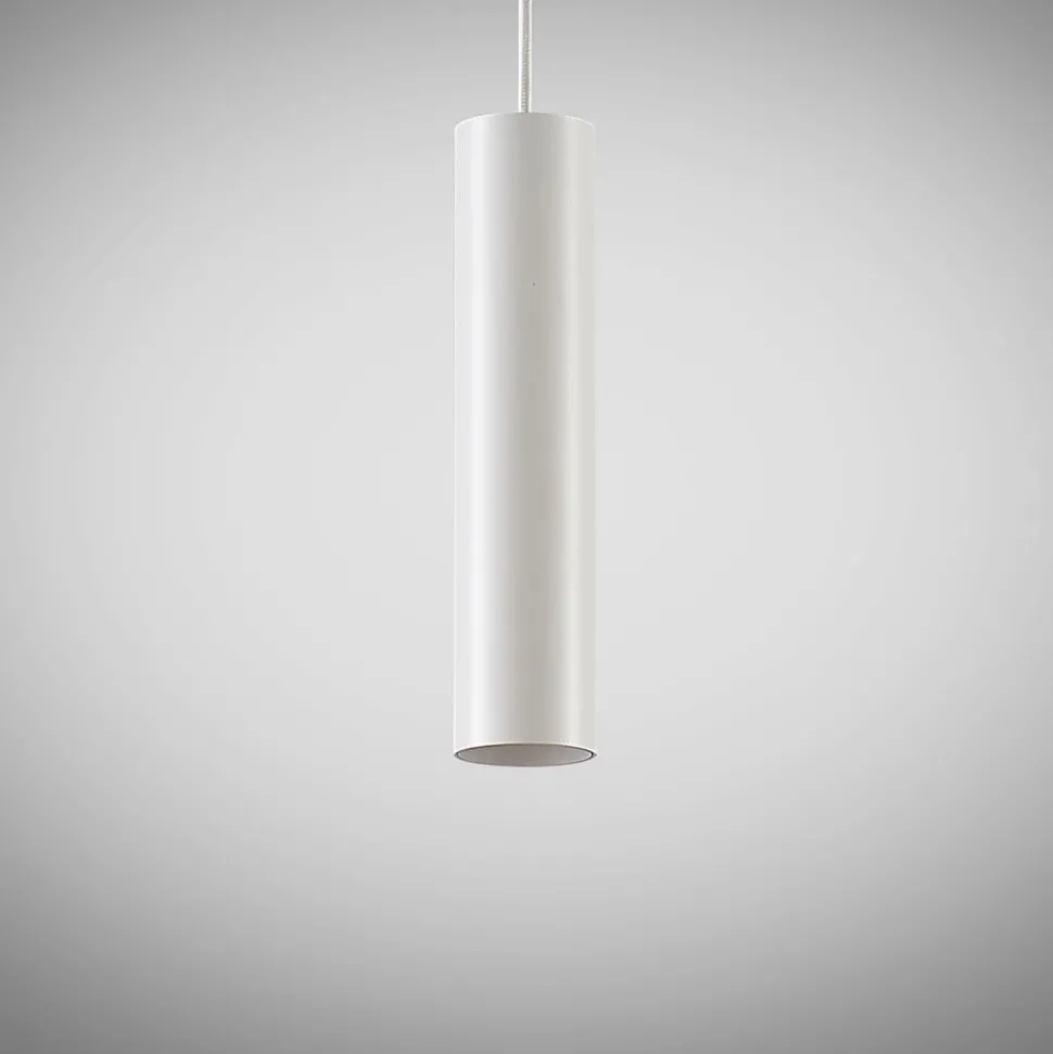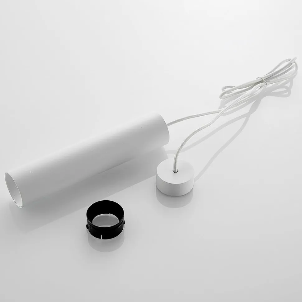 Ronde, smalle hanglamp Ejona van aluminium in wit met extra reflectorlamp in zwart Ejona is een modern ogend verlichtingselement met een eenvoudig ontwerp dat in veel ruimtes past, zowel in een privéomgeving als voor commercieel gebruik, bijvoorbeeld in een verfijnde verkoopruimte die aantrekkelijk verlicht moet worden. De kap is gemaakt van aluminium en heeft een witte oppervlakteafwerking die mooi en harmonieus is op een onopvallende manier. Indien gewenst kan een extra reflectorlamp worden gebruikt, die verkrijgbaar is in zwart en een mooi contrast vormt met het verder witte oppervlak. Voor een bijzonder professionele uitstraling en effectieve verlichting kunnen meerdere armaturen uit de serie met elkaar worden gecombineerd om een ruimte of zelfs een toonbank volledig te verlichten, waarbij het licht in een puntvorm in de ruimte wordt gebundeld. De stralingshoek kan echter ook enigszins worden beïnvloed door de keuze van de lamp, aangezien GU10 lampen verkrijgbaar zijn met een smallere of bredere lichtverdeling.
