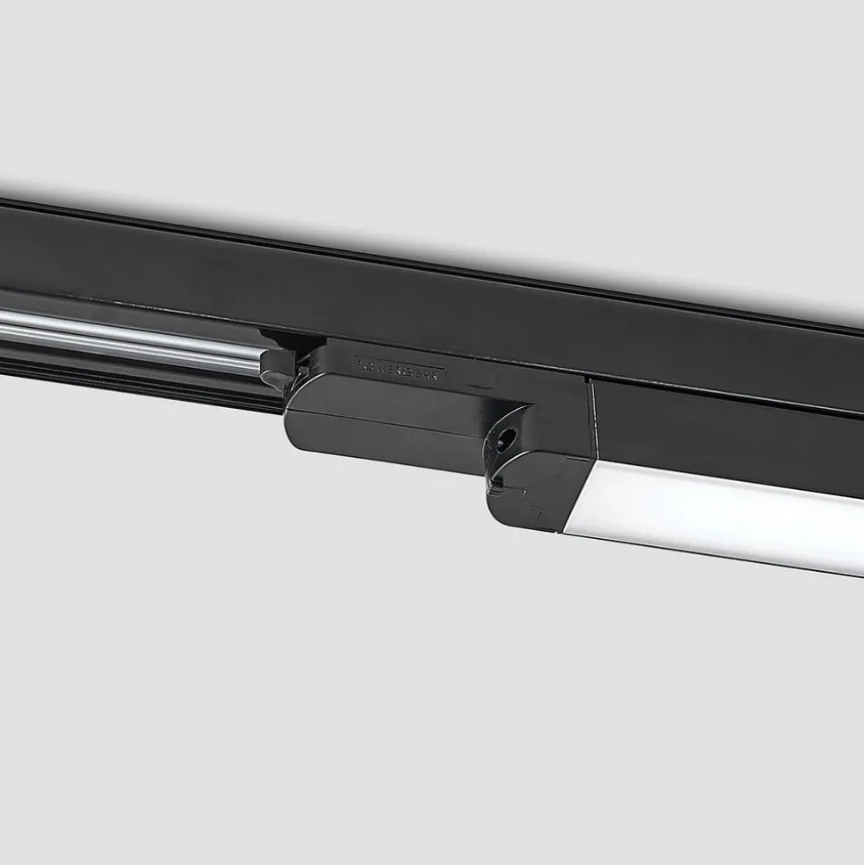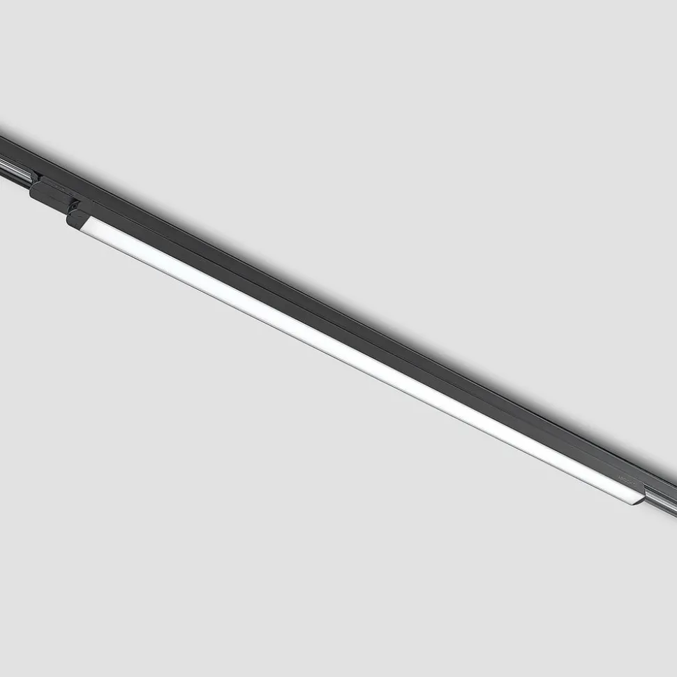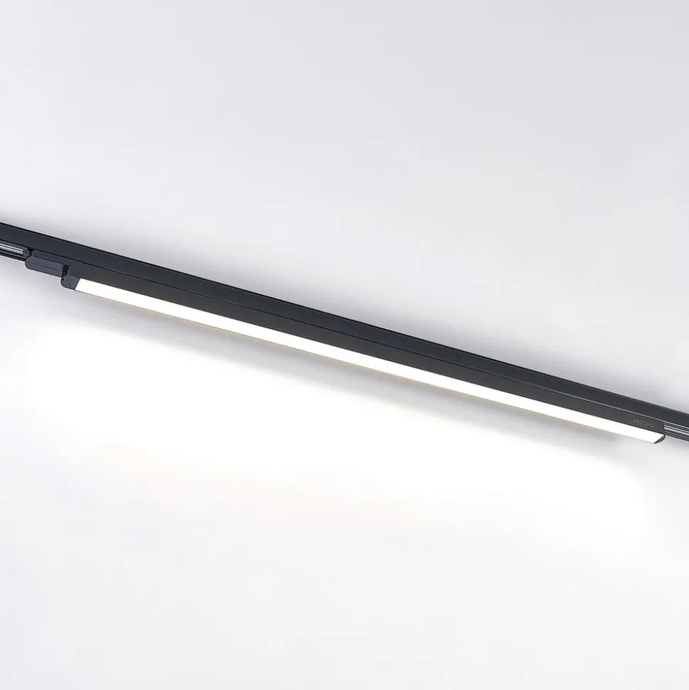 Zwarte LED lineaire armatuur Harlow voor railsysteem met 3-fasen railsysteem Harlow wordt bevestigd aan een 3-fasen railsysteem en zorgt voor helder en gelijkmatig licht. De LED’s van de lineaire armatuur schijnen helder en zijn tegelijkertijd bijzonder efficiënt, waardoor het stroomverbruik relatief laag blijft. Door de armatuur op een stroomrail te gebruiken, kan deze naar wens worden gecombineerd met een hele reeks andere armaturen om een uniek verlichtingsconcept te creëren dat is afgestemd op uw persoonlijke behoeften. Dit geldt zowel voor gebruik in huis als wanneer Harlow bedoeld is voor commercieel gebruik of in een openbare omgeving. Het uiterlijk van de armatuur is altijd discreet en relatief tijdloos, maar het zwarte oppervlak staat ook voor een moderne expressie – Lineair armatuur voor montage op een stroomrail (3 fasen) – SDCM < 4 – UGR 29.9