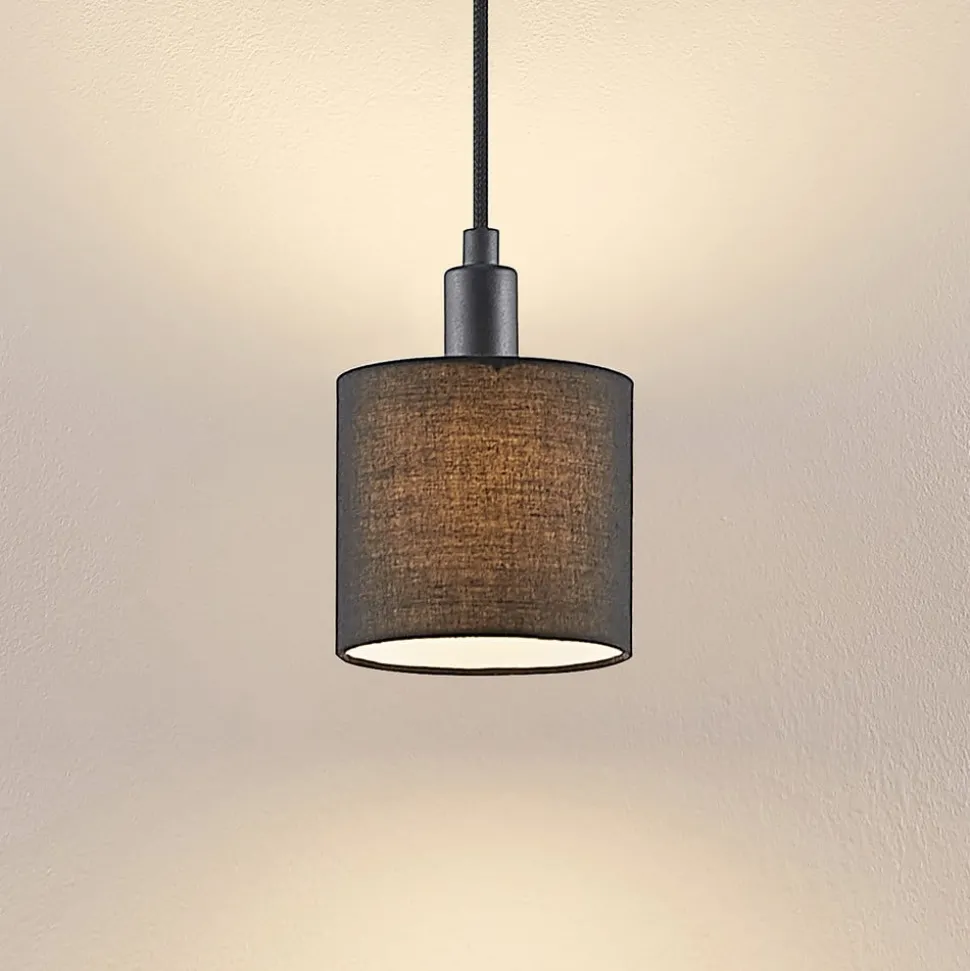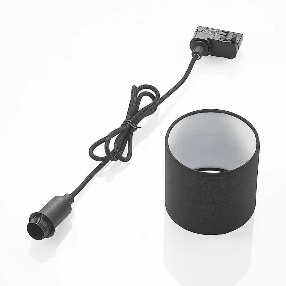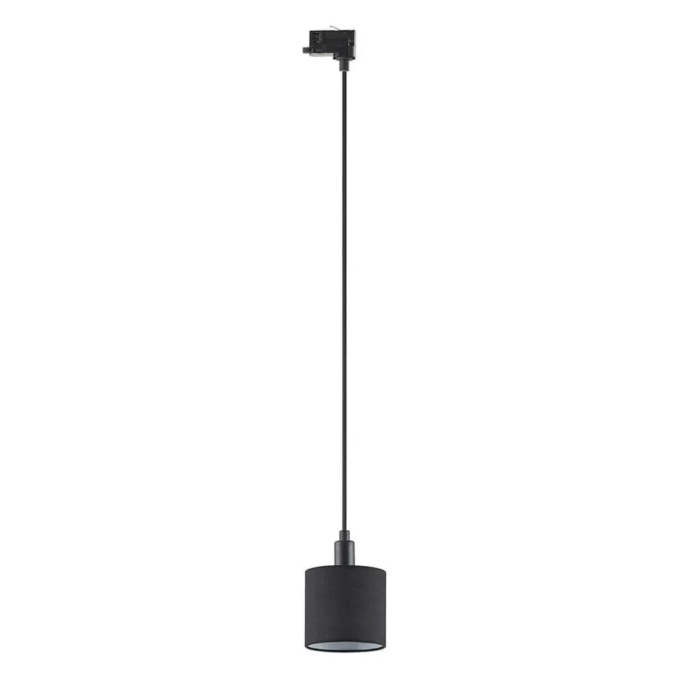 Heleni hanglamp met zandzwarte textielen kap in een cilindrische vorm, kan worden geïntegreerd in een 3-fasen railsysteem Heleni is een stijlvolle hanglamp voor een 3-fasen railsysteem. Ze bestaat uit een cilindrische kap die bevestigd is aan een eenvoudige ophanging en gemaakt is van textiel. De kleur van het armatuur is zandzwart en de ondoorzichtige kapwanden zorgen voor niet-verblindende verlichting. De Heleni hanglamp kan worden uitgerust met passende lichtbronnen, waardoor de lichtkleur en lichtintensiteit kunnen worden aangepast aan persoonlijke wensen.
