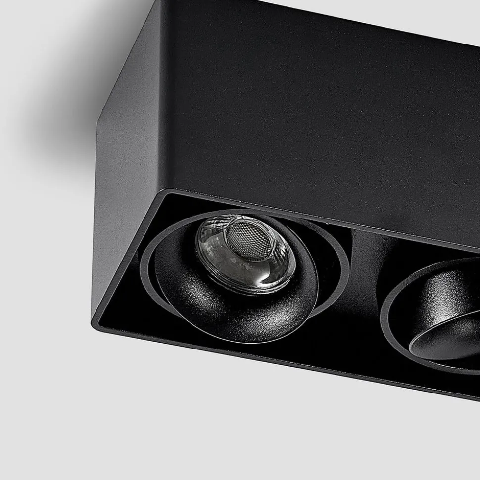 Arcchio Kubika downlight, 19 cm, zwart, 2-lamps, metaal