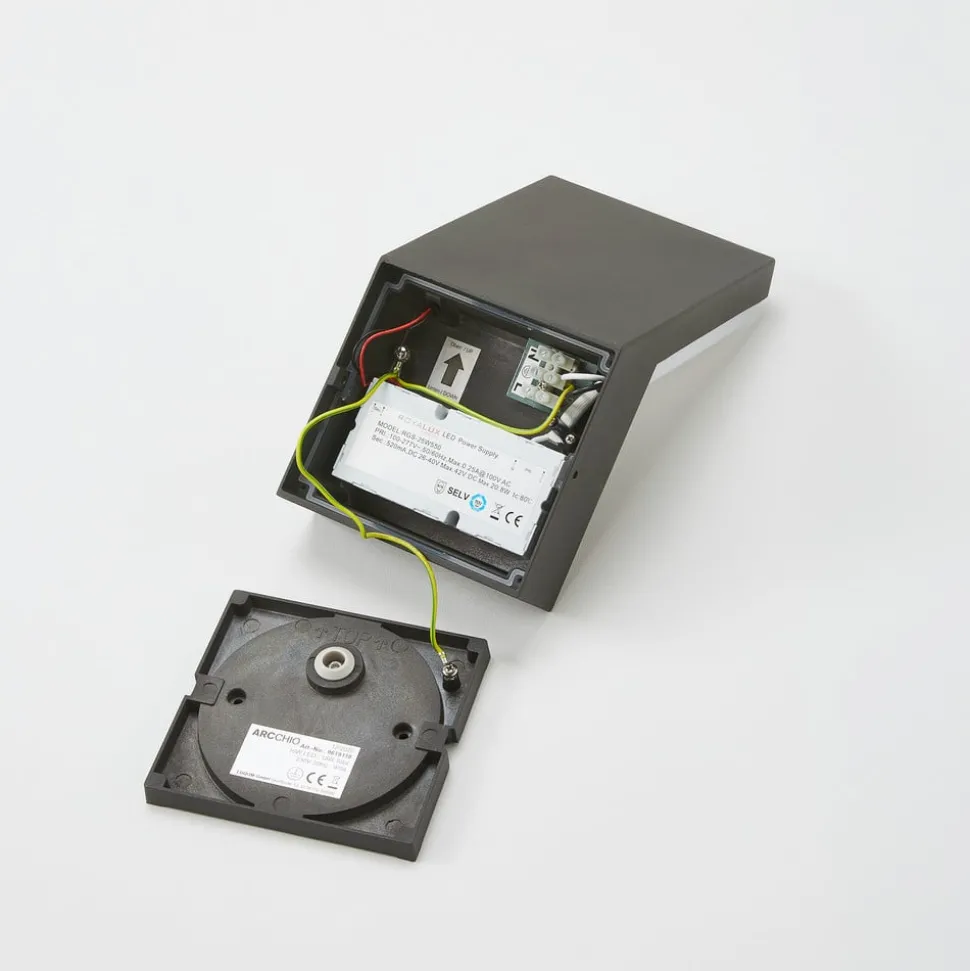 Arcchio LED buiten wandlamp Yolena, sensor, antraciet, aluminium