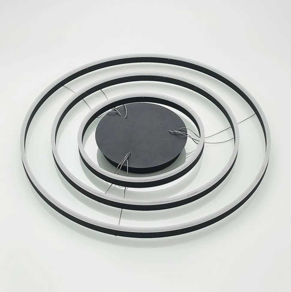 Arcchio LED hanglamp Albiona, zwart, 3 ringen, Ø 80 cm