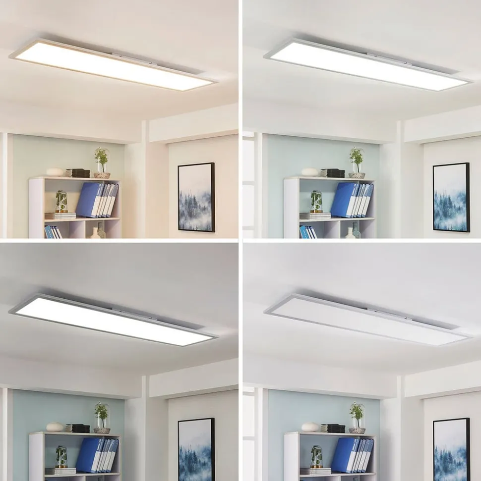 Zilver, dimbaar Lysander LED paneel in een langwerpige vorm, variabele lichtkleur Met zijn langwerpige vorm en grote verlichte gebied, evenals de krachtige LED’s, zorgt dit paneel voor een goede helderheid in de kamer. Zelfs als je het licht te fel vindt, is er geen probleem, want de LED’s kunnen optimaal worden gedimd met de meegeleverde afstandsbediening. Het is ook het vermelden waard dat de lichtkleur van de LED plafondlamp ook kan worden aangepast aan je persoonlijke voorkeuren met de afstandsbediening. Warmwit licht zet gezellige accenten en een universeel witte lichttemperatuur is ideaal om te werken, terwijl de daglichtkleur de kamer verlicht met een koel, blauwachtig licht. Dit zou aan alle eisen moeten voldoen en het paneel is niet alleen geschikt voor gebruik in huis, maar is ook een zeer praktische aanvulling op kantoren of vergaderzalen – met hoogwaardige, schroefloze snelaansluiting (duurzaam, veilig en veermechanisme zonder gereedschap)