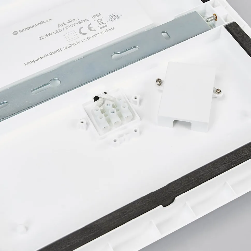 Hoekige Augustin plafondlamp met een eenvoudig uiterlijk en universeel witte LED’s, IP54 De LED plafondlamp Augustin is een functionele lichtbron die visueel zo onopvallend is dat hij op zoveel mogelijk verschillende manieren kan worden gebruikt. De lamp heeft een eenvoudige, hoekige vorm en heeft naast het witte frame een polycarbonaat diffuser, ook met een wit oppervlak, die zorgt voor een gelijkmatige verdeling van het LED-licht. Augustin kan natuurlijk ook worden gebruikt in privéwoningen, maar is ook geschikt als technische verlichting voor commerciële doeleinden en openbare gebouwen. Opgemerkt moet worden dat de energiebesparende LED’s een helder licht produceren dat niet gepaard gaat met een hoog energieverbruik, maar wel met een laag vermogen. De beschermingsgraad IP54 betekent dat de LED plafondlamp ook kan worden gebruikt in ruimtes waar het vochtig kan worden, omdat deze voldoende bescherming biedt tegen water.
