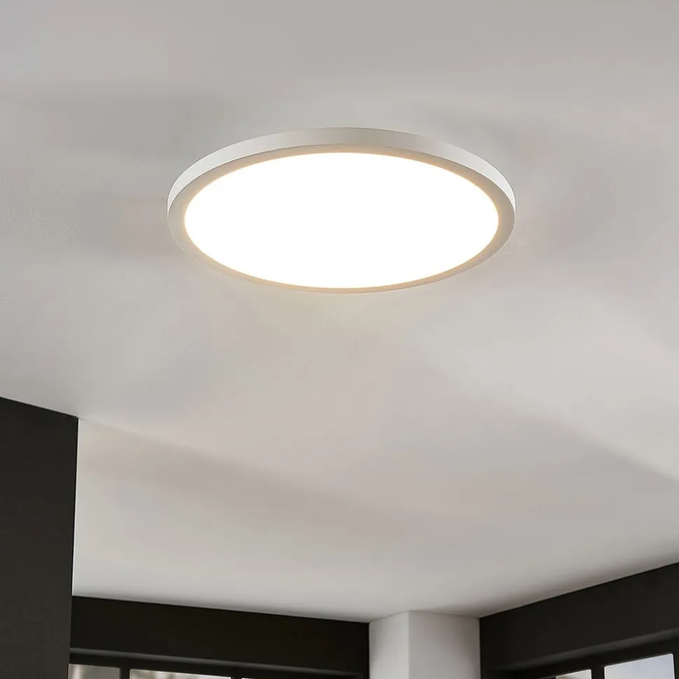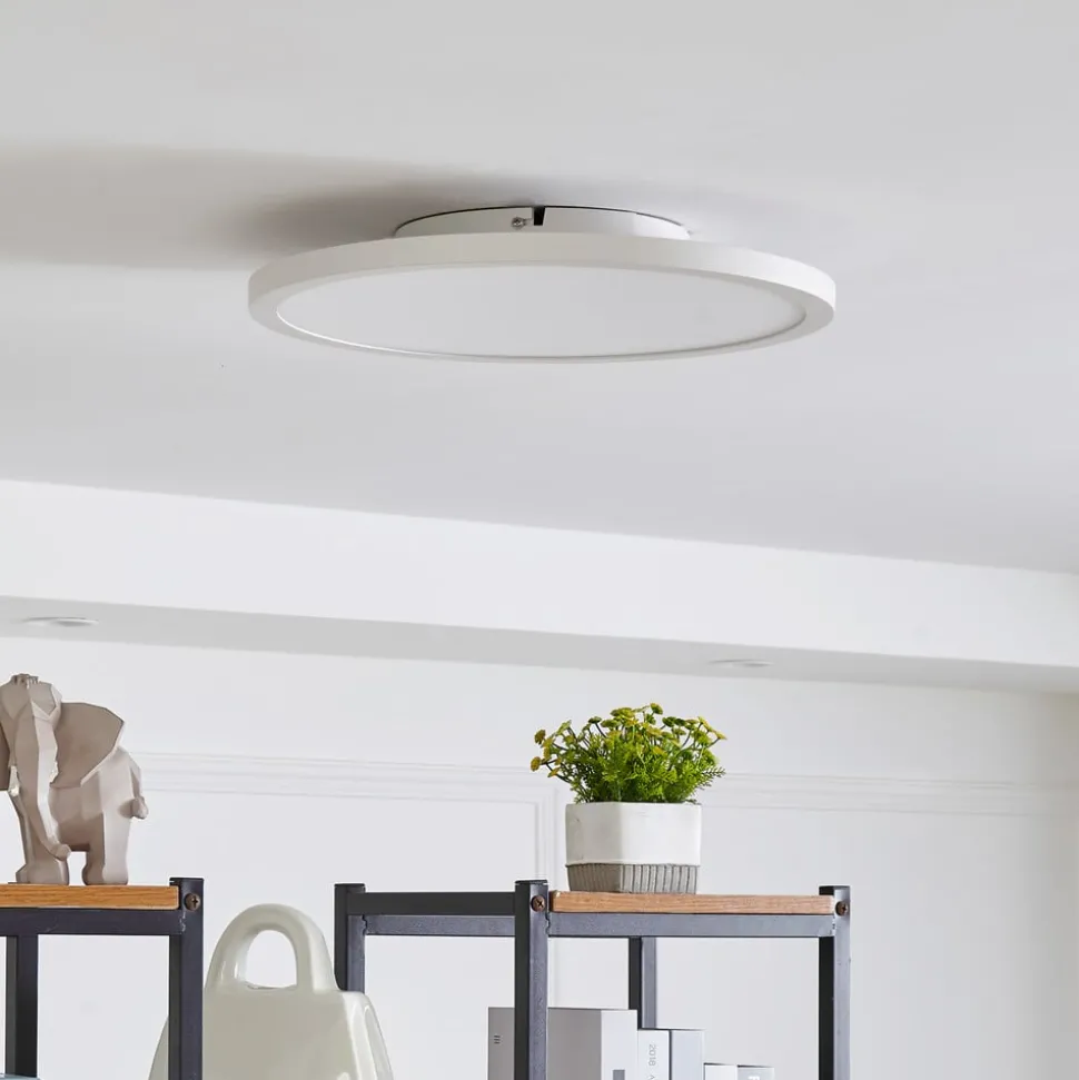 De ronde LED plafondlamp Brenda: veranderende helderheid en lichttemperatuur dankzij afstandsbediening Dankzij de geringe diepte kan deze LED plafondlamp voorkomen dat de ruimte kleiner lijkt en tegelijkertijd een cool, modern statement maken. Openbare ruimtes, dokterspraktijken en puristische woonkamers worden perfect geaccentueerd. De ronde vorm en het witte metalen frame zorgen samen voor een geraffineerde look zonder opdringerig te zijn. De lichttemperatuur kan worden gewijzigd via een afstandsbediening zonder de Leuchten Direkt aan te raken. Tegelijkertijd zorgt een dimfunctie inclusief nachtlampje voor de juiste helderheid op elk moment van de dag. Dit maakt de plafondlamp Brenda tot een allround pragmatische lichtbron. Technische details: – met hoogwaardige, schroefloze snelaansluiting (duurzaam, veilig en veermechanisme zonder gereedschap) – met CCT-kleurwisselfunctie voor het veranderen van de lichtkleur – geïntegreerde nachtlichtmodus – ingebouwde dimtechnologie – functies kunnen worden bediend via afstandsbediening