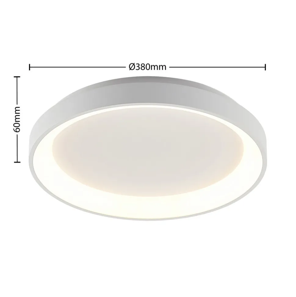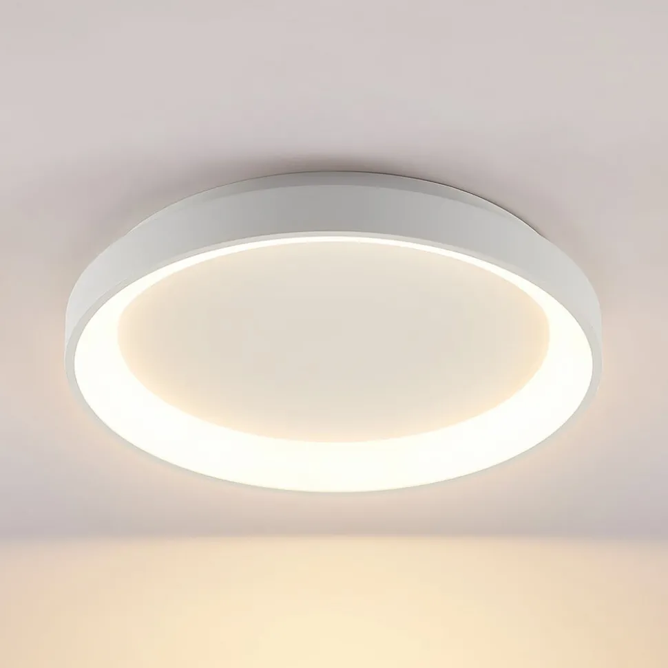 Ronde, witte LED plafondlamp Vivy met goede helderheid Vivy kan zeker worden gezien als een herinterpretatie van een klassieke keukenlamp, wat vooral te danken is aan de ronde vorm en ringvormige lichtemissie. De plafondlamp is echter bijzonder efficiënt in vergelijking met eerdere lampen en produceert helder licht, hoewel het stroomverbruik relatief laag is. Dit zijn voordelen die altijd welkom zijn in zowel privé- als commerciële omgevingen. Het ontwerp met zijn ronde vorm en witte oppervlak ziet er eenvoudig en modern uit – een aantrekkelijke LED plafondlamp voor vele doeleinden!