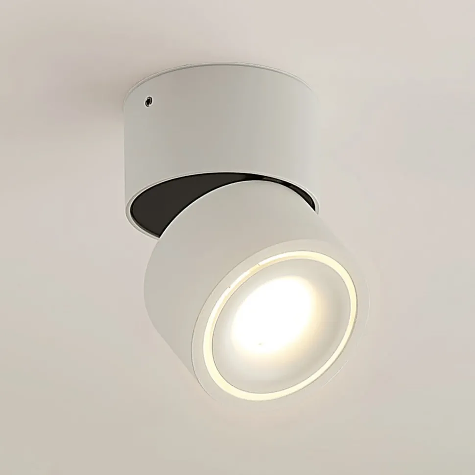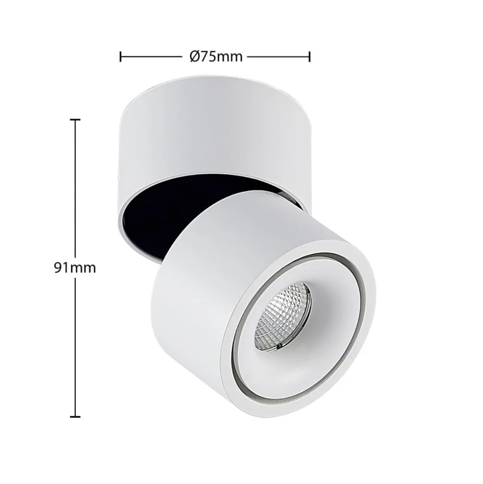 Draaibare en zwenkbare LED plafondspot Rotari in wit De KLEINER LED plafondspot overtuigt door zijn modieuze design en flexibele verlichtingsopties. Zijn lampenkop kan niet alleen 350° worden gedraaid, maar ook 90° worden gedraaid. De aluminium behuizing is uitgerust met een ingebouwde reflectorlamp die een stralingshoek van 34° heeft en de ruimte verrijkt met warmwit licht (3.000 K). De helderheid van het armatuur kan indien nodig worden aangepast met een fase aansnijdimmer of fase afsnijdimmer en heeft een Cri Cri > 90. De driver is in de behuizing geïntegreerd.