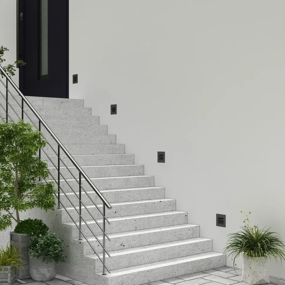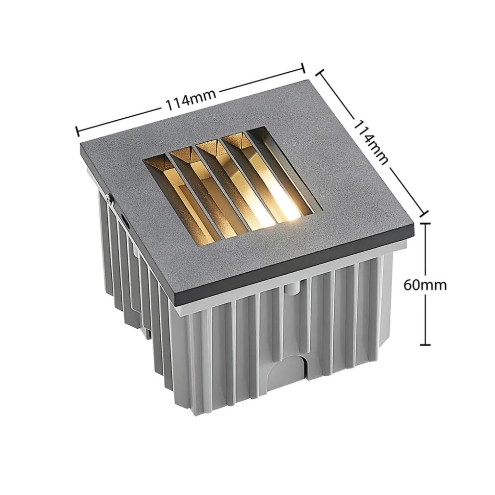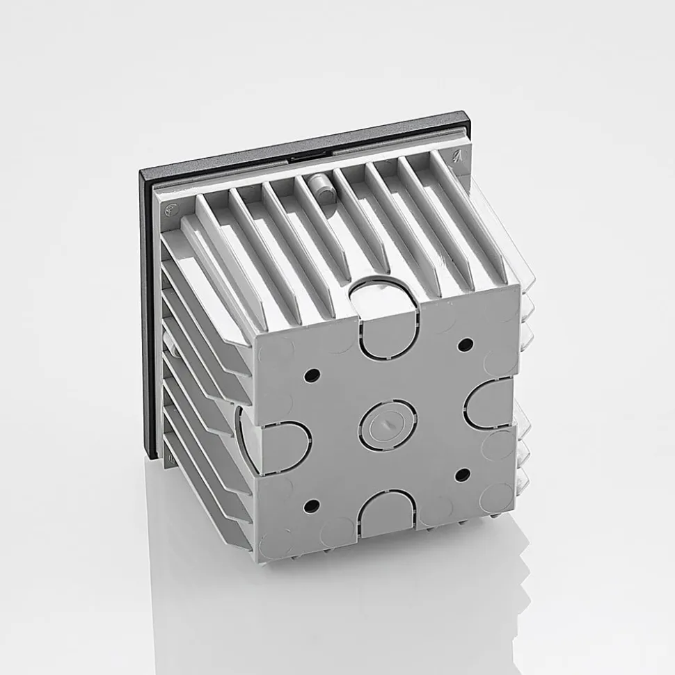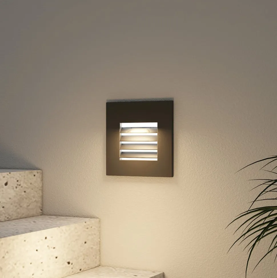 De Makio-inbouwlamp is geschikt voor installatie zowel binnen als buiten. Hij is gemaakt van aluminium en heeft een eenvoudige, zwarte kleur. Wanneer de armatuur is geïnstalleerd, blijft er slechts een compact, vierkant element over, dat zich goed in vlakke wanden integreert. De Makio-inbouwarmatuur kan worden uitgerust met passende lichtbronnen en het geproduceerde licht wordt aangenaam gedimd door de lamellen. Dankzij de IP65-beschermingsgraad is de armatuur ook geschikt voor gebruik buitenshuis, aangezien ze aantoonbaar beschermd is tegen stof en waterstralen.