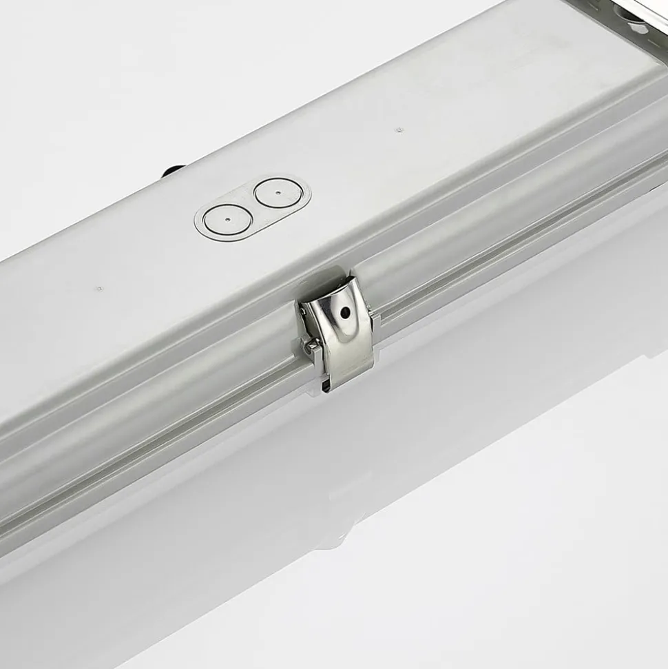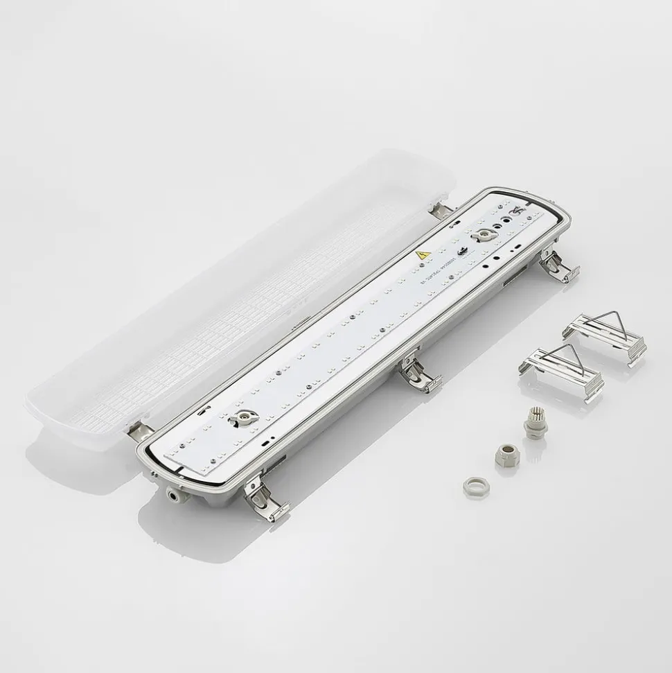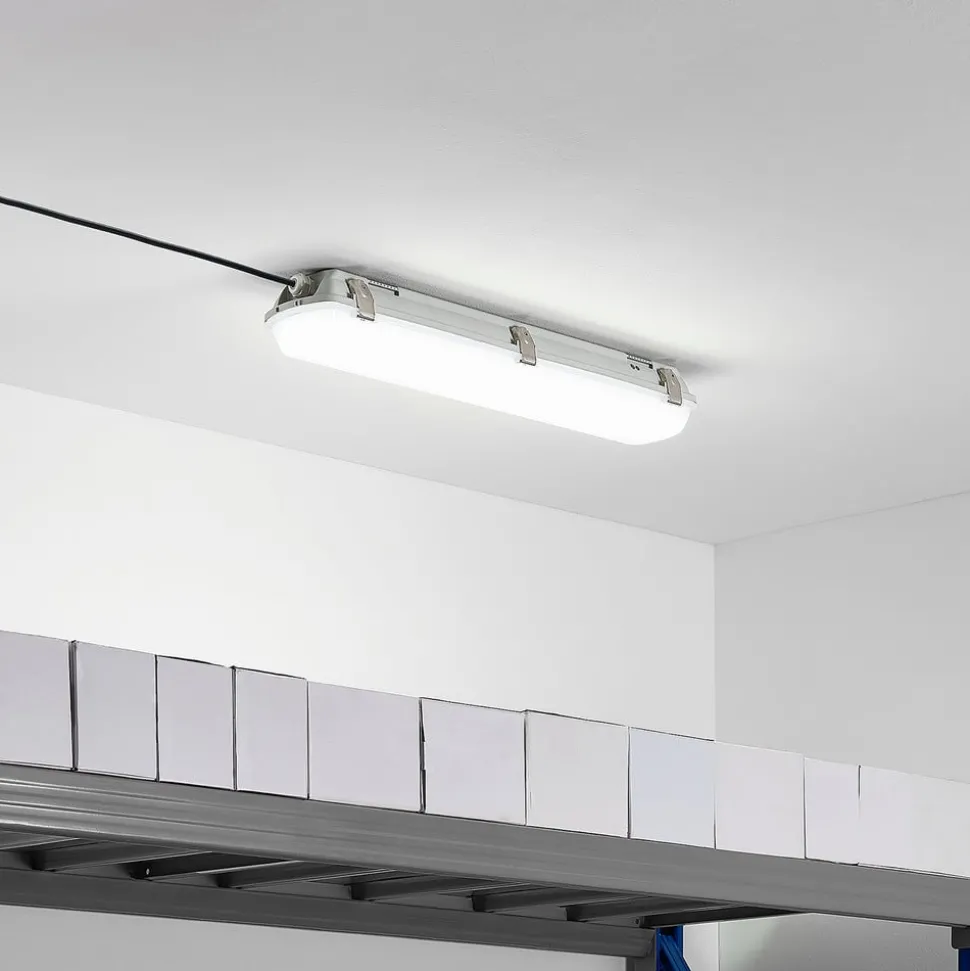 Deze LED-opbouwdiffusorarmatuur is een echte aanwinst voor een heldere verlichting, vooral in commerciële ruimten of in vochtige ruimten rond het huis en op het erf, bijvoorbeeld de garage of een kelder. Dankzij de hoge beschermingsgraad kunnen vuil en vocht de diffusorarmatuur nauwelijks beschadigen, zodat ze ook geschikt is voor ruimten waar de luchtvochtigheid soms hoger kan zijn. De LED’s blijken bijzonder efficiënt te zijn en zorgen voor voldoende helderheid bij een relatief laag stroomverbruik. Het licht is flikkervrij en vóór de installatie kunt u kiezen uit drie lichtkleuren, die u kunt selecteren met de geïntegreerde DIP-schakelaar. Dankzij zijn hoge mate van schokbestendigheid is Rao een bijzonder robuuste armatuur.